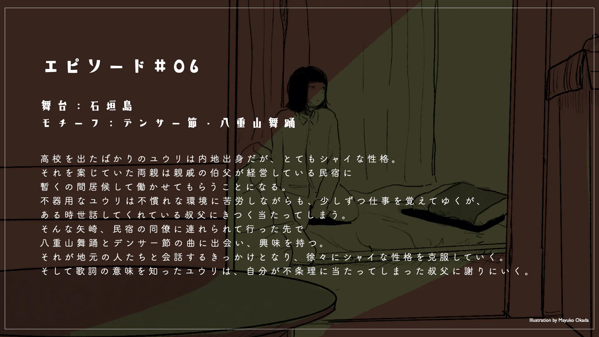 新型コロナウィルスの影響で八重山観光も大きな打撃を受け、観光関連業者も疲弊しきっています。そんな状況の中、八重山観光のパイオニアとして何か出来ることはないかと社員で何度も話し合いを持ってきました。そんな折、東京の映像制作会社である㈱まほろばの中垣社長様よりお声掛けがあり、新たな八重山の魅力を伝えるため協力したいとのお話をいただきました。社員や㈱まほろば様とも話し合いを続ける中、当社社員がふと話した八重山の「民話」「民謡」のストーリーに共感されぜひドラマにして発信してみようということになりました。地元からしたら当たり前に受け継がれてきた文化を新たな魅力として日本中に発信するだけでなく、地元の若い世代にも知ってもらえればもっと地元を愛してくれるはずだと確信し本プロジェクトを実施することにしました。
