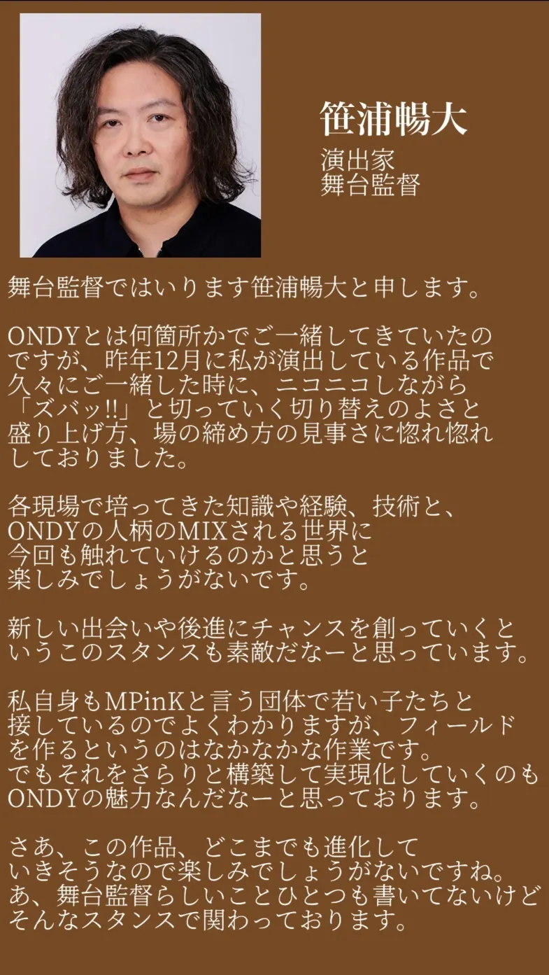 振付師のONDYこと恩田和典です。この度は僕のプロジェクトをご覧いただきありがとうございます!