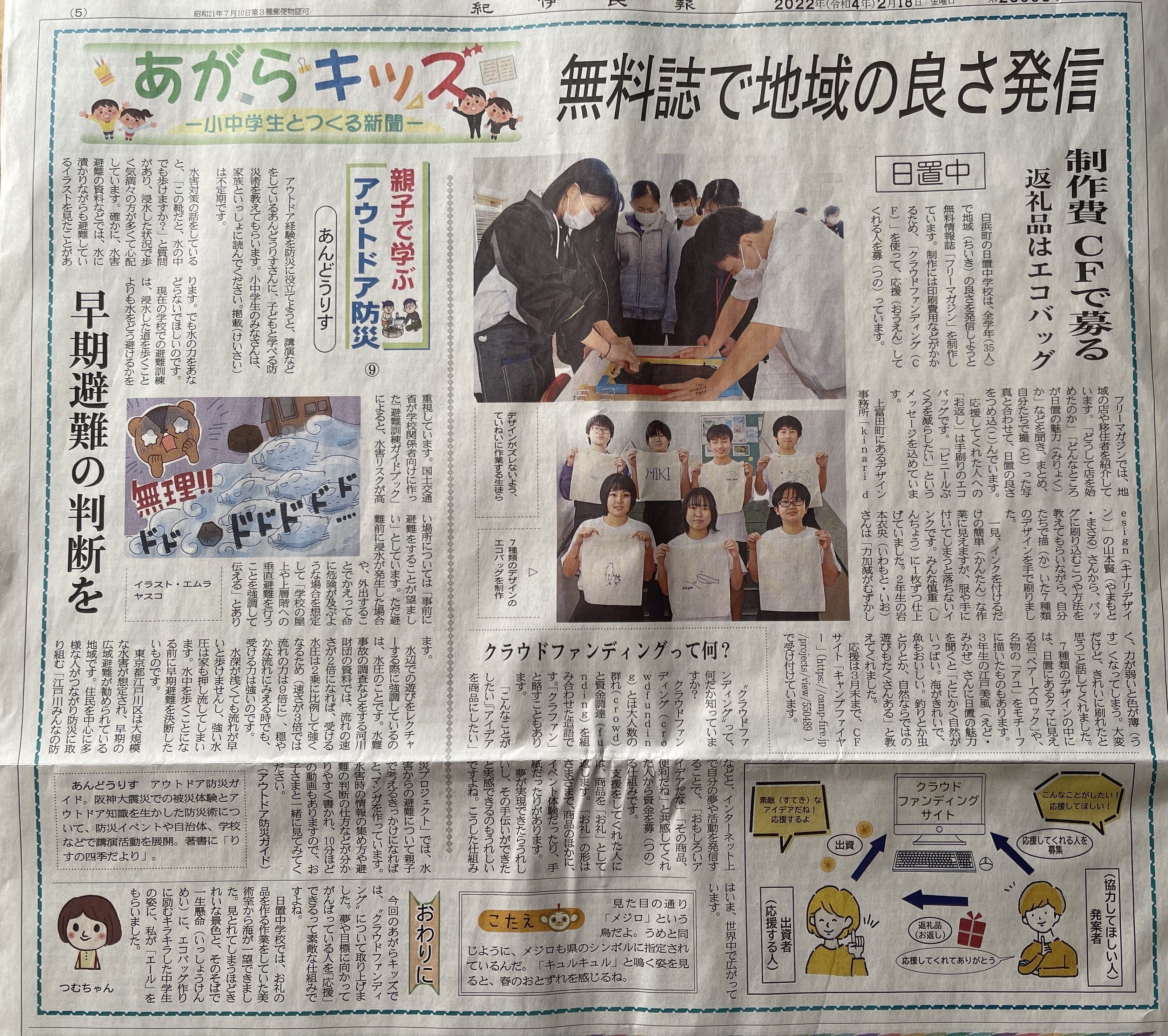 今回のクラウドファンディング『和歌山県にある日置の良さを多くの人に知ってほしい!!思いを届けるプロジェクト』の活動が、和歌山の紀南地方の地域新聞『紀伊民報』に取り上げられました!