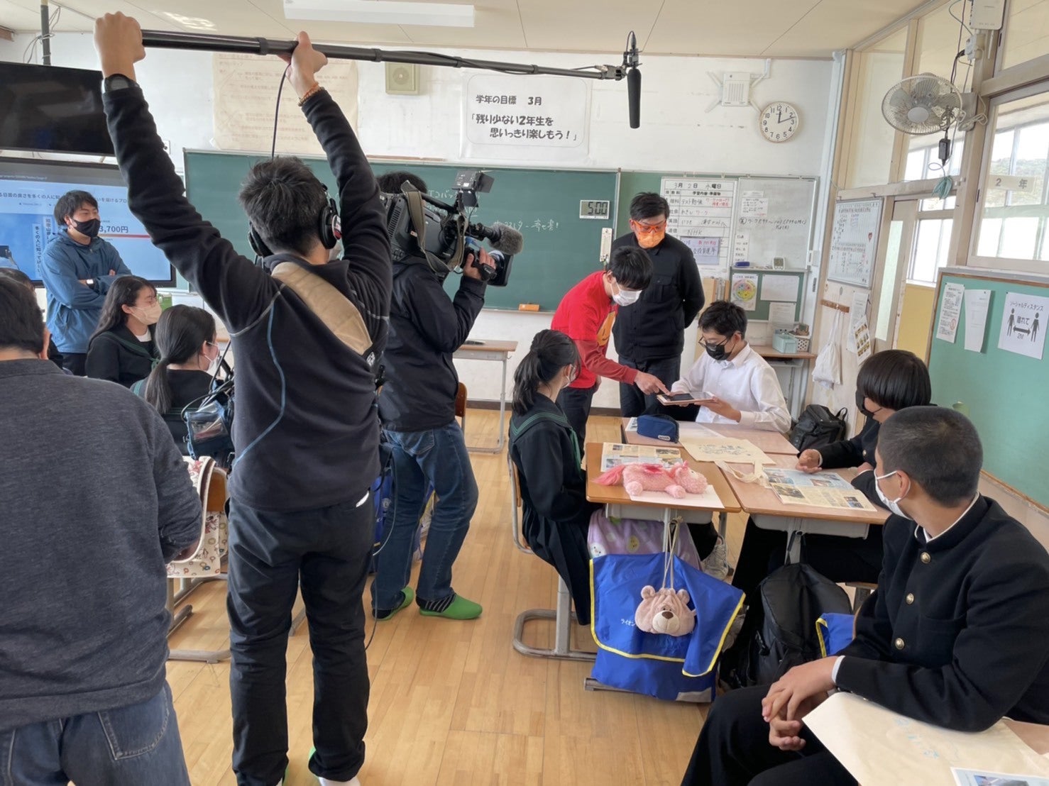 NHK和歌山の夕方の番組「ギュギュっと和歌山」のテレビ取材で、わんだーらんどの2人が日置中学校に来てくれました!