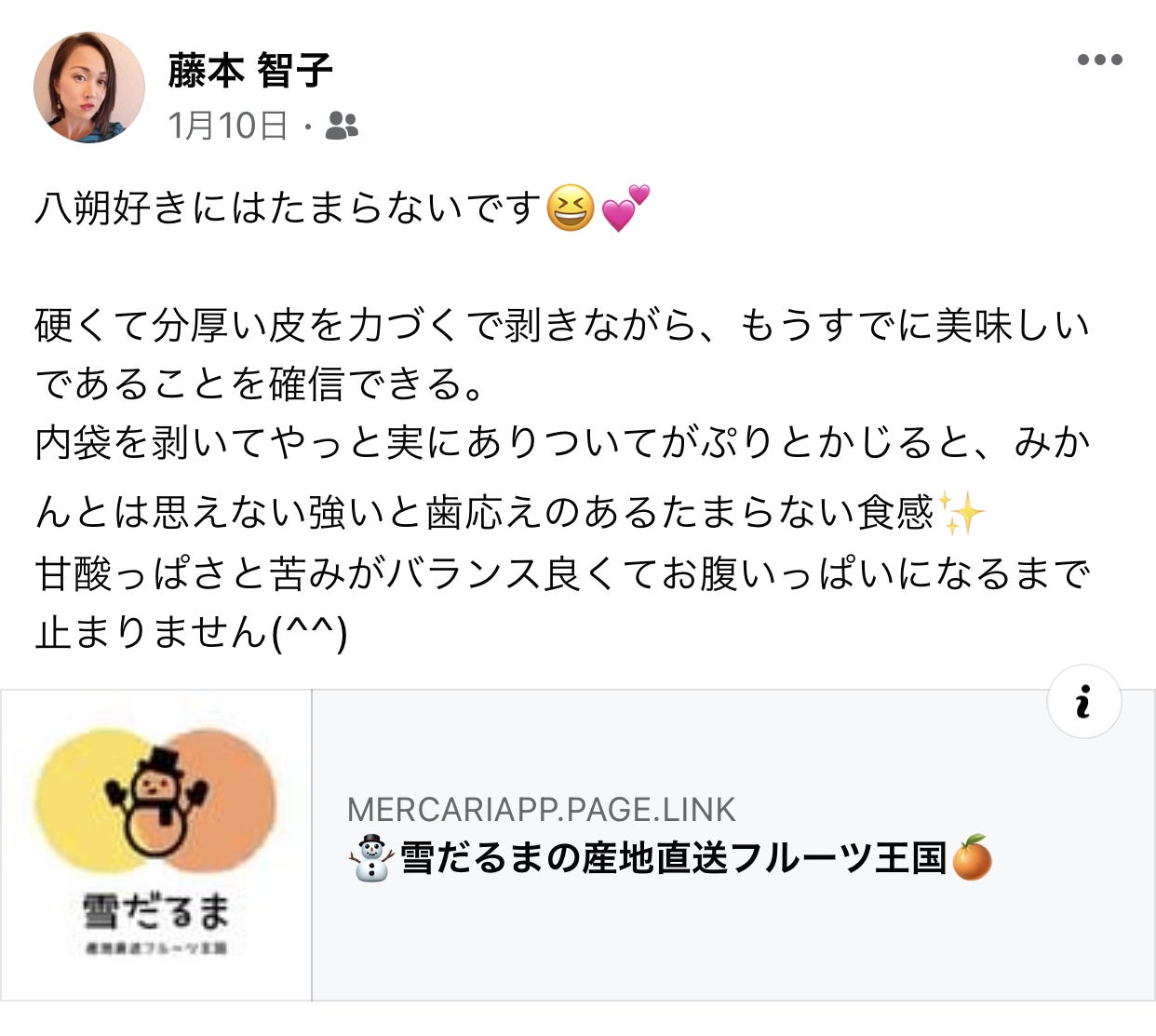 【雪だるまの産地直送フルーツ王国】https://jp.mercari.com/user/profile/216110809