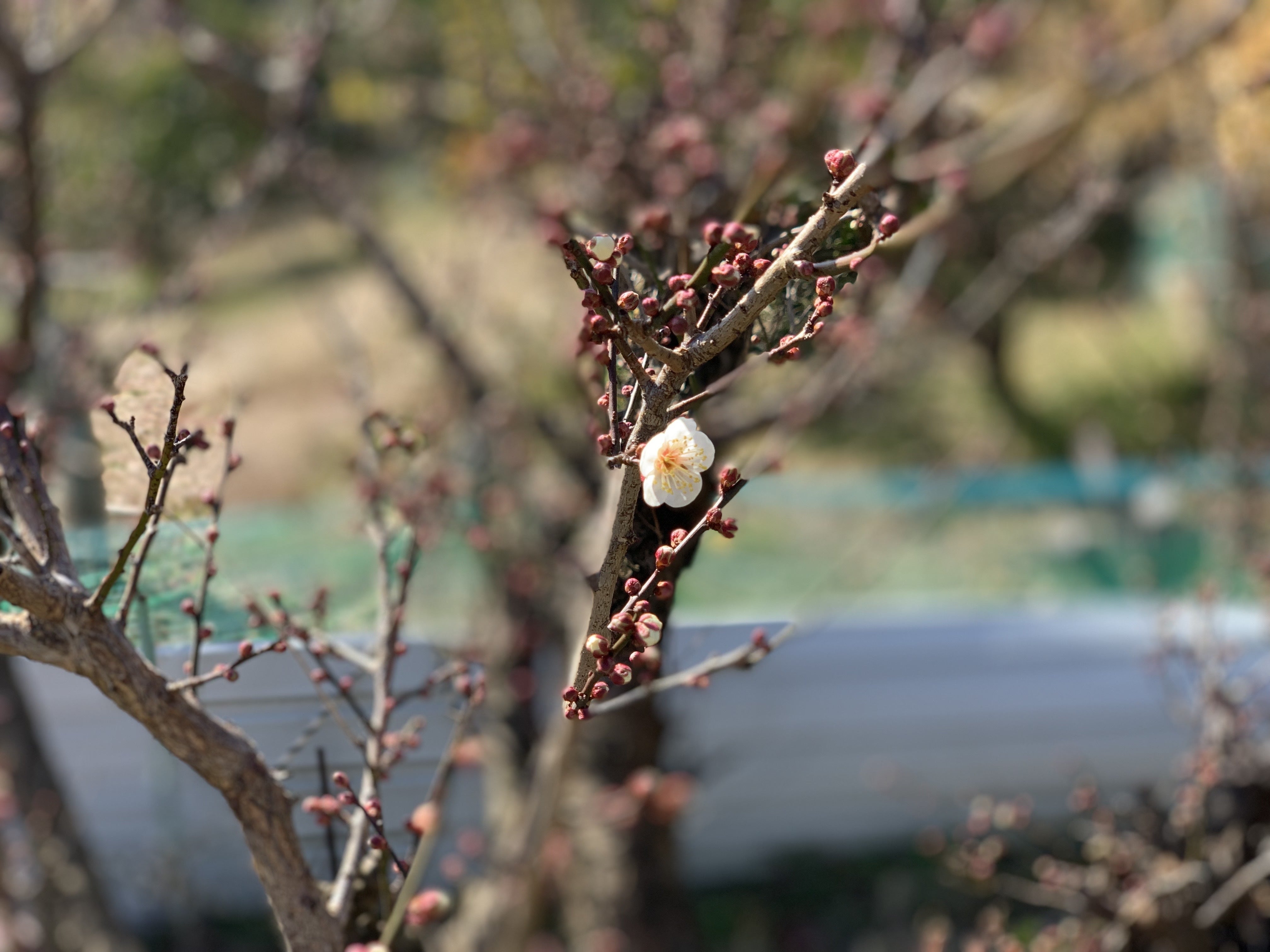 今日見つけた花に春を感じましたのでご紹介しておきますね。これはきっと梅の花です!←もちろん自信はありません・・・。