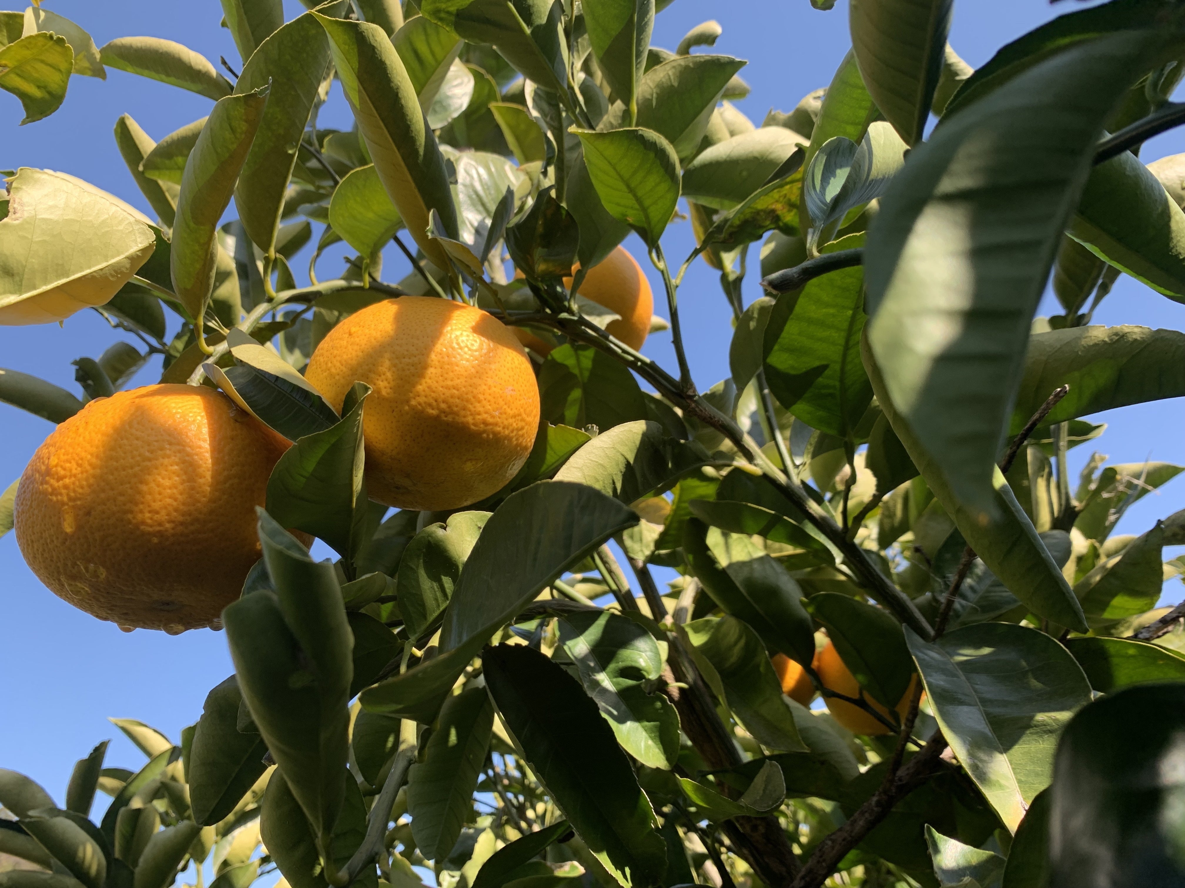 昨夜少し雨が降りましたので、今日はもうその水滴にまみれながら収穫をしました苦笑。この写真のはっさくも水がしたたっていますね!