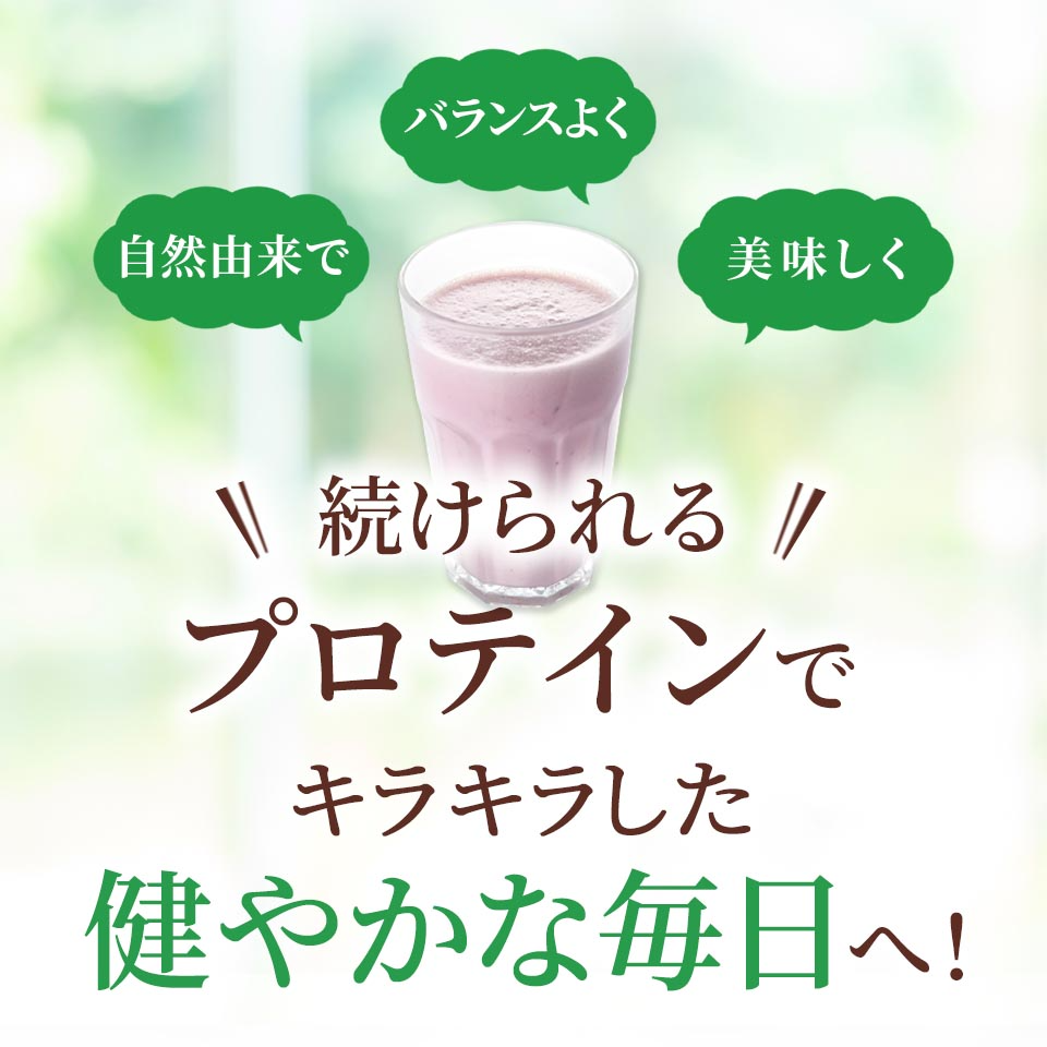 タンパク質の他にも美容と健康に良い成分が一杯入っているのも良いですね!不足しがちなビタミン、ミネラルはもちろん、サプリメントとして人気の「大麦若葉」粉末と「枸杞(くこ)の実」エキスも配合されているのが嬉しいです。
