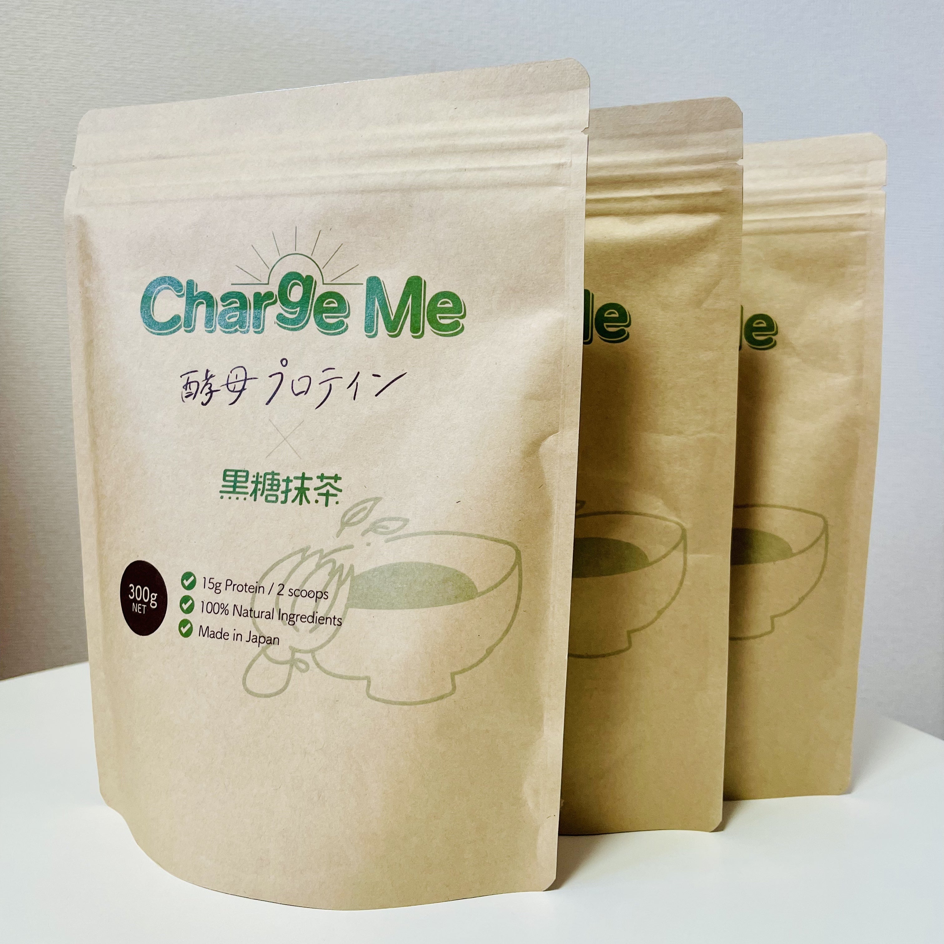 今回、フレーバーは生産の都合上一種類のみとなりますが、ChargeMe開発メンバーの一押しフレーバーの「黒糖抹茶」をお届けします。