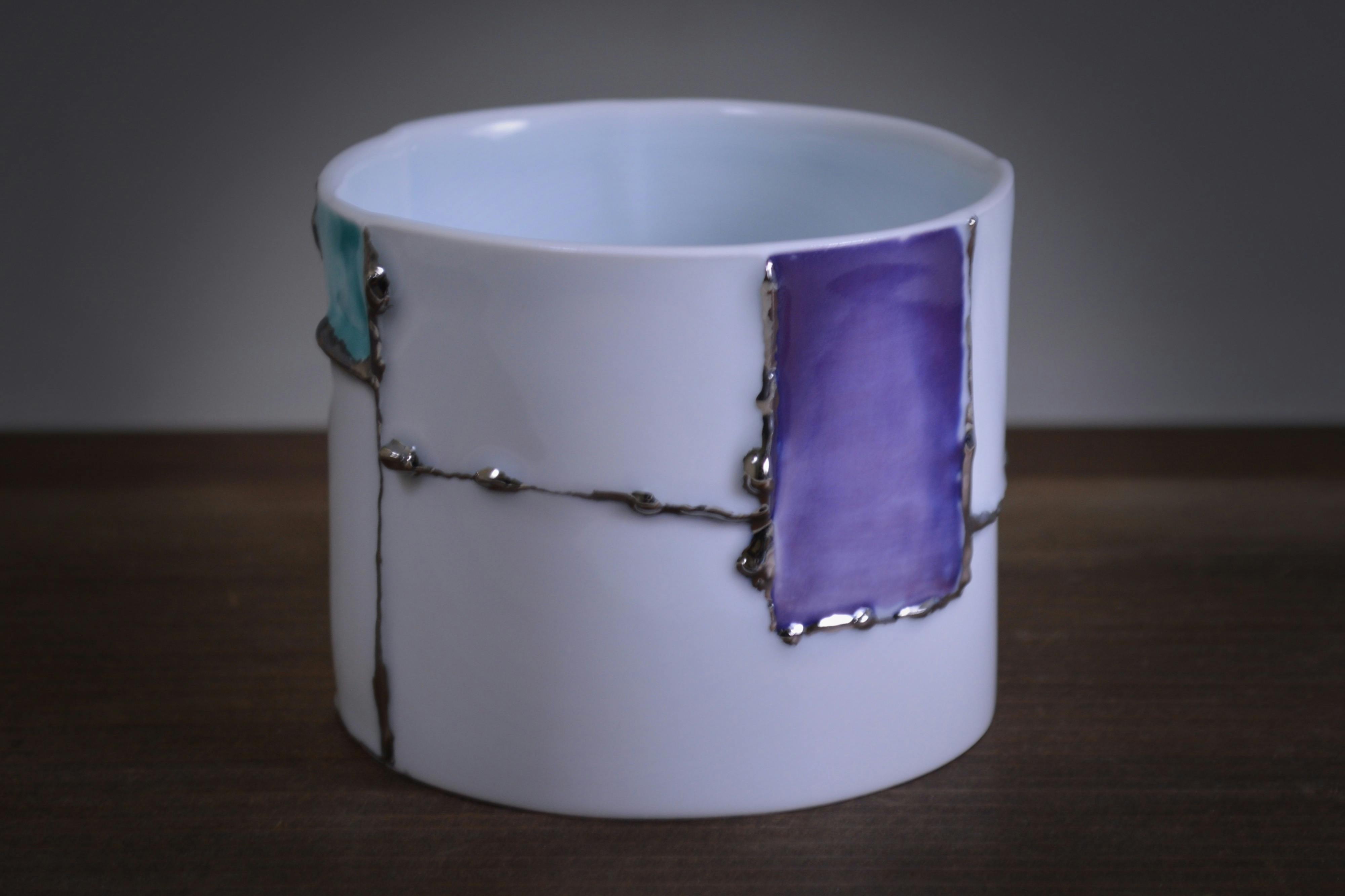 手のひらに収まるこのステンドグラス彩の器は、磁器特有の神々しさを携えつつも、宝飾品のような銀彩がキラキラ輝く美しさを持っています。