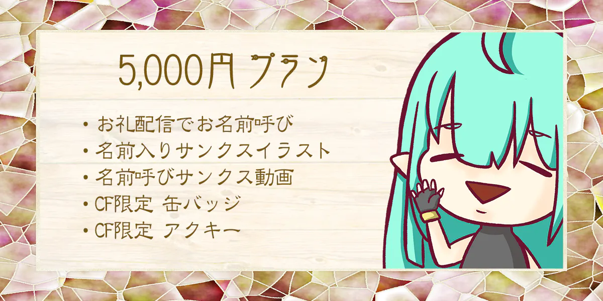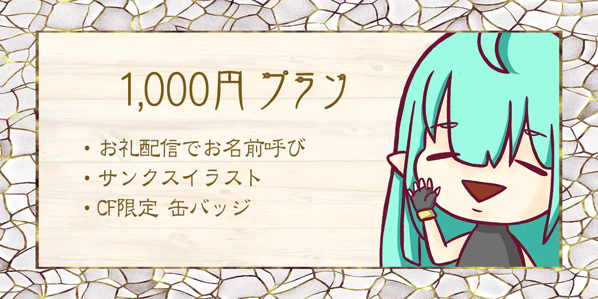 ②グッズの発送を行う際、本名・住所を匿名で発送ご希望の方は、BOOTHにて「CF専用グッズ 100円+手数料+送料」をご購入していただく必要がございます。