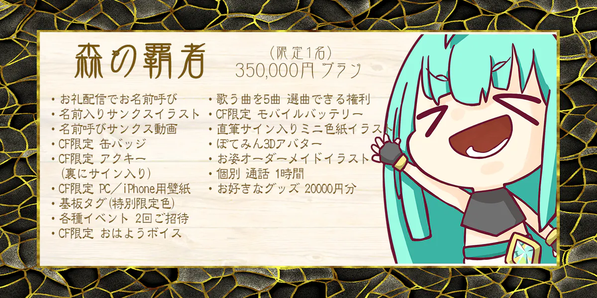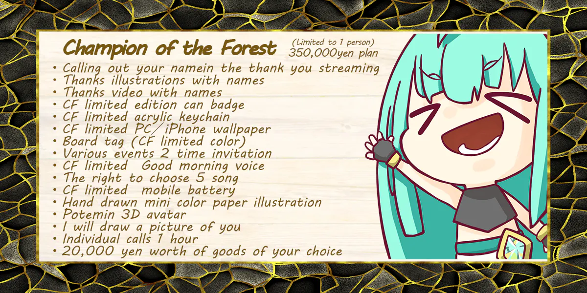 ・Champion of the Forest: Limited edition design, 20,000 yen worth of goods of your choice