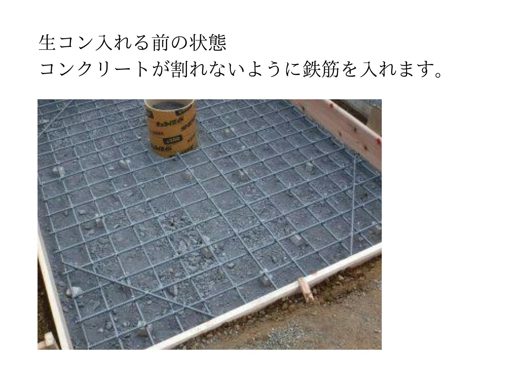 基礎工事の強さは、コンクリートの質と、割れない為の鉄筋の太さと配筋です。