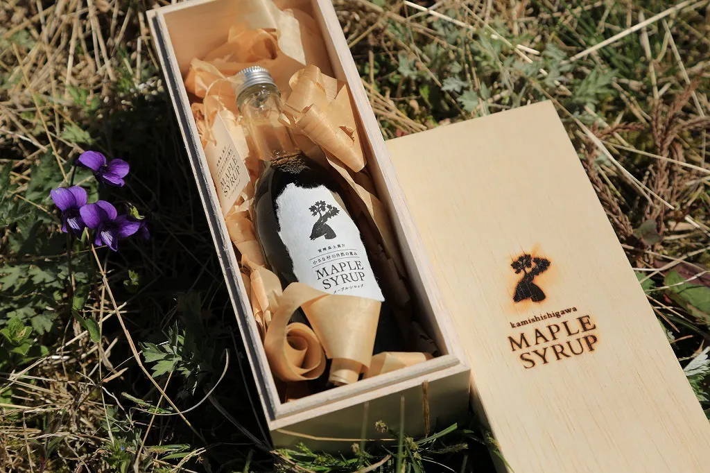 メープルシロップは、上鹿川のイタヤカエデ・モミジ類から採取した樹液を煮詰めて製品化していますが、製作本数が少なく高価なため主にふるさと納税の返礼品等に活用されており、一般には出回っていない貴重なものです。
