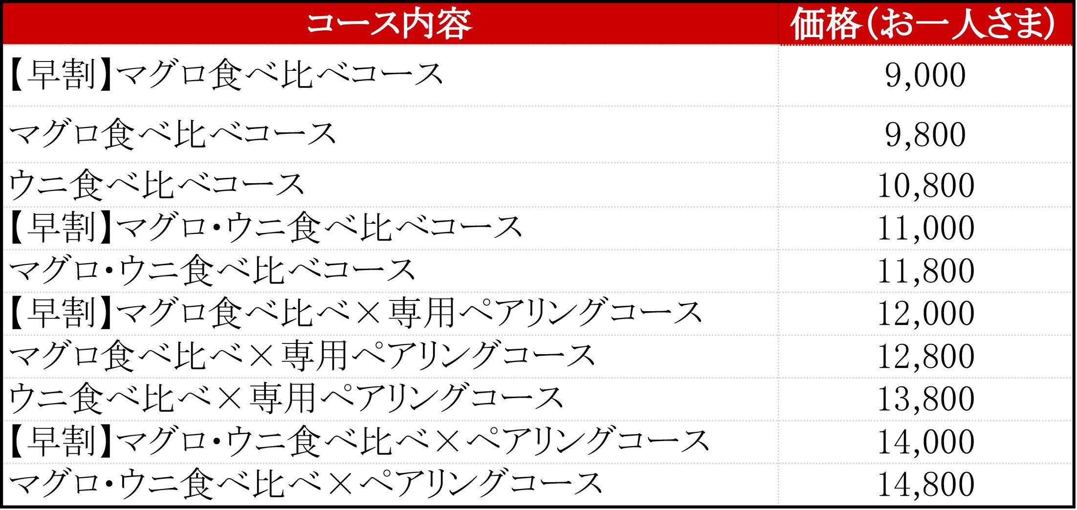 マグロとウニの食べ比べコースは、オープンを記念した今回だけ!
