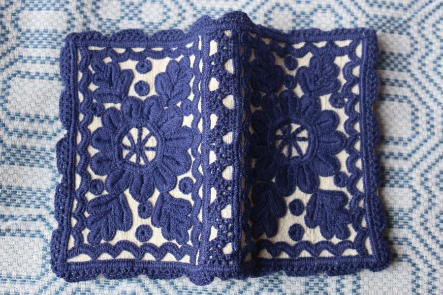刺繍でびっしりと埋めたブックカバーを手にするのは感激すること間違いなしです。