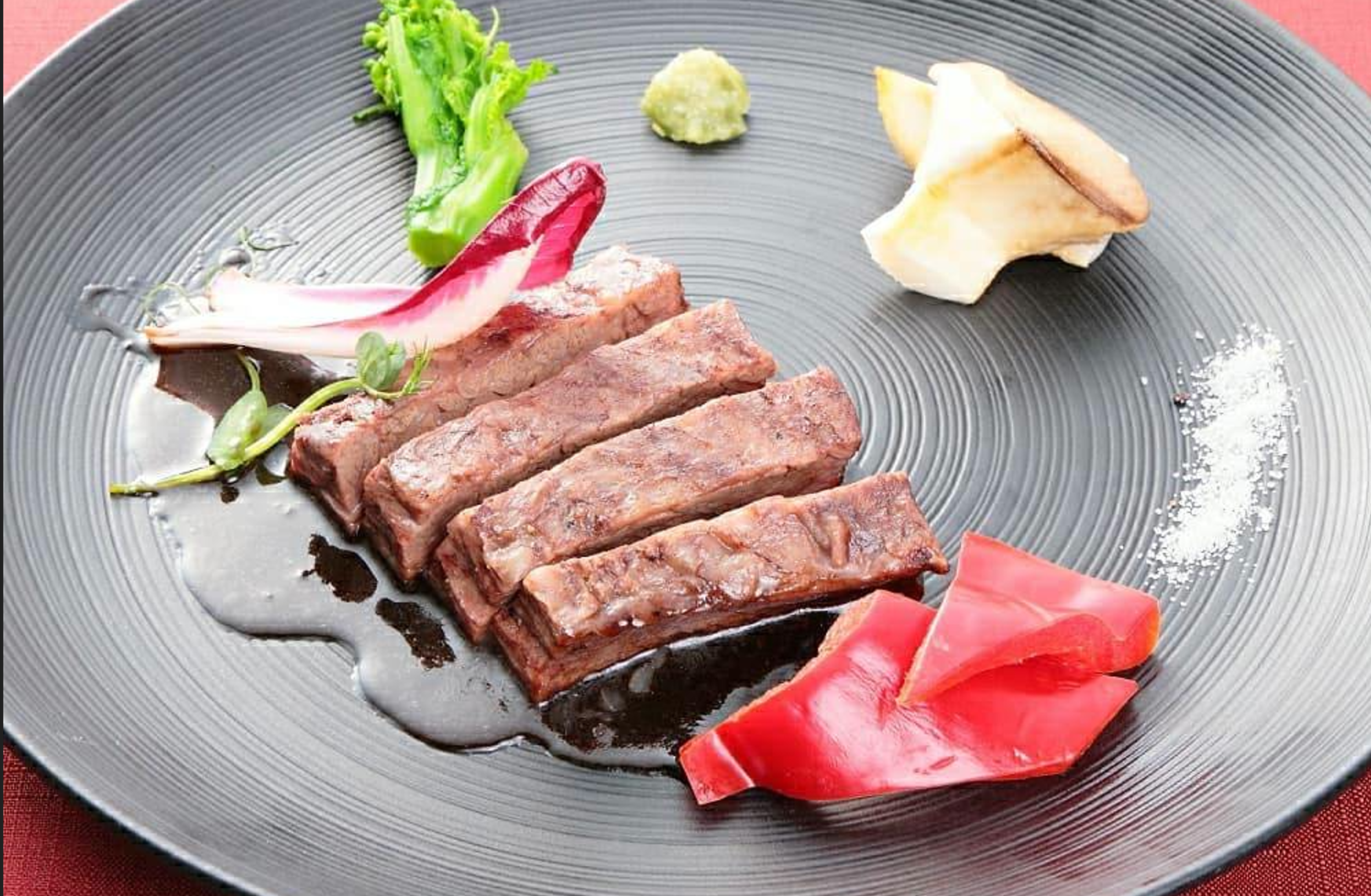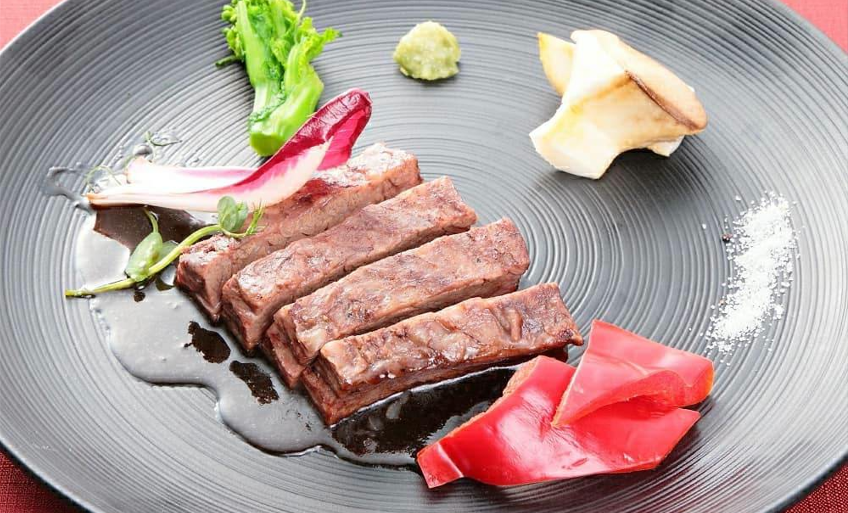 塩か醤油とワサビで食べていただけると、黒毛和牛の肉の脂の甘味と、香りを楽しむことができます。ステーキソースなどは、香りや甘みをごまかしてしまうので、あまりおすすめではありません。高級料理店のソースは、そのソースの素材の味になります。