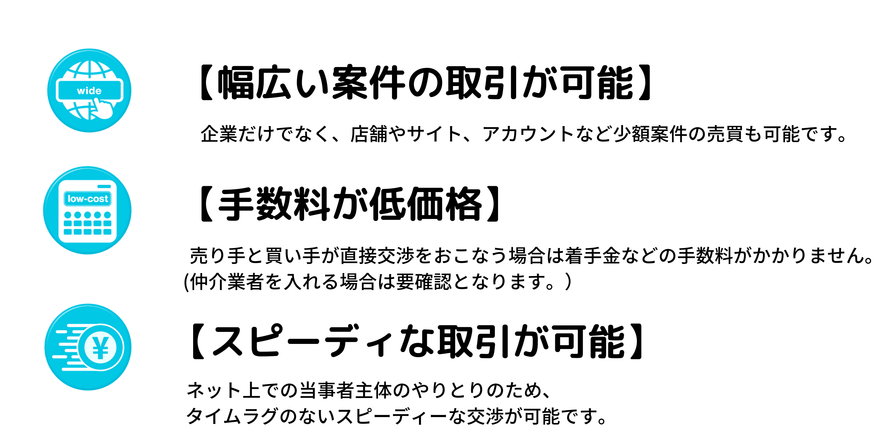 (M&A会社だと手数料が高く売却が困難であった案件も売却対象となります)