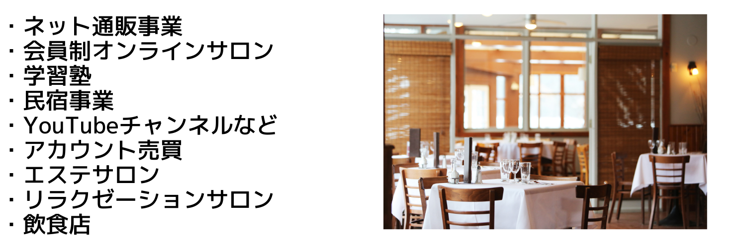 具体的には一例ですが、以下のような事業売買が可能です。