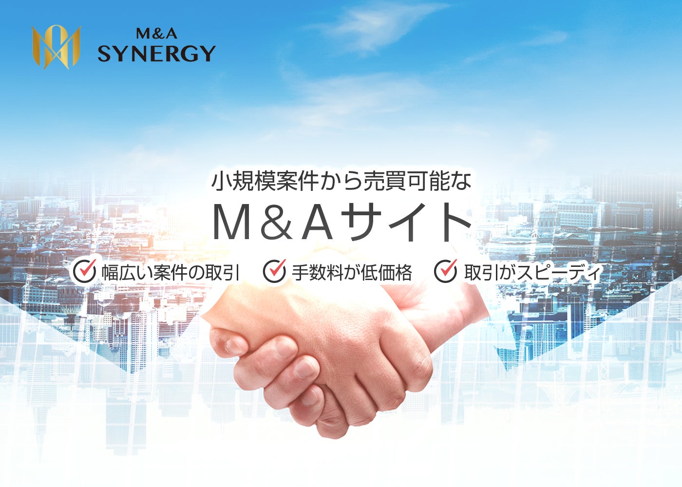 M&Aシナジーは、小規模案件にウェイトを置いたM&Aマッチングサイトです。
