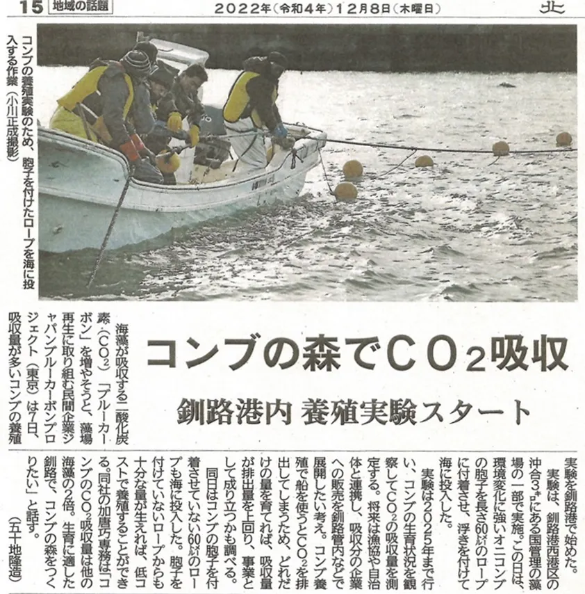 釧路港西港の島防波堤付近でコンブの養殖実験をスタートしました。