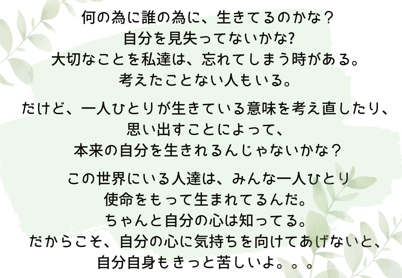一つ目は、 「生きる上で大切なメッセージをお伝えすること」です。