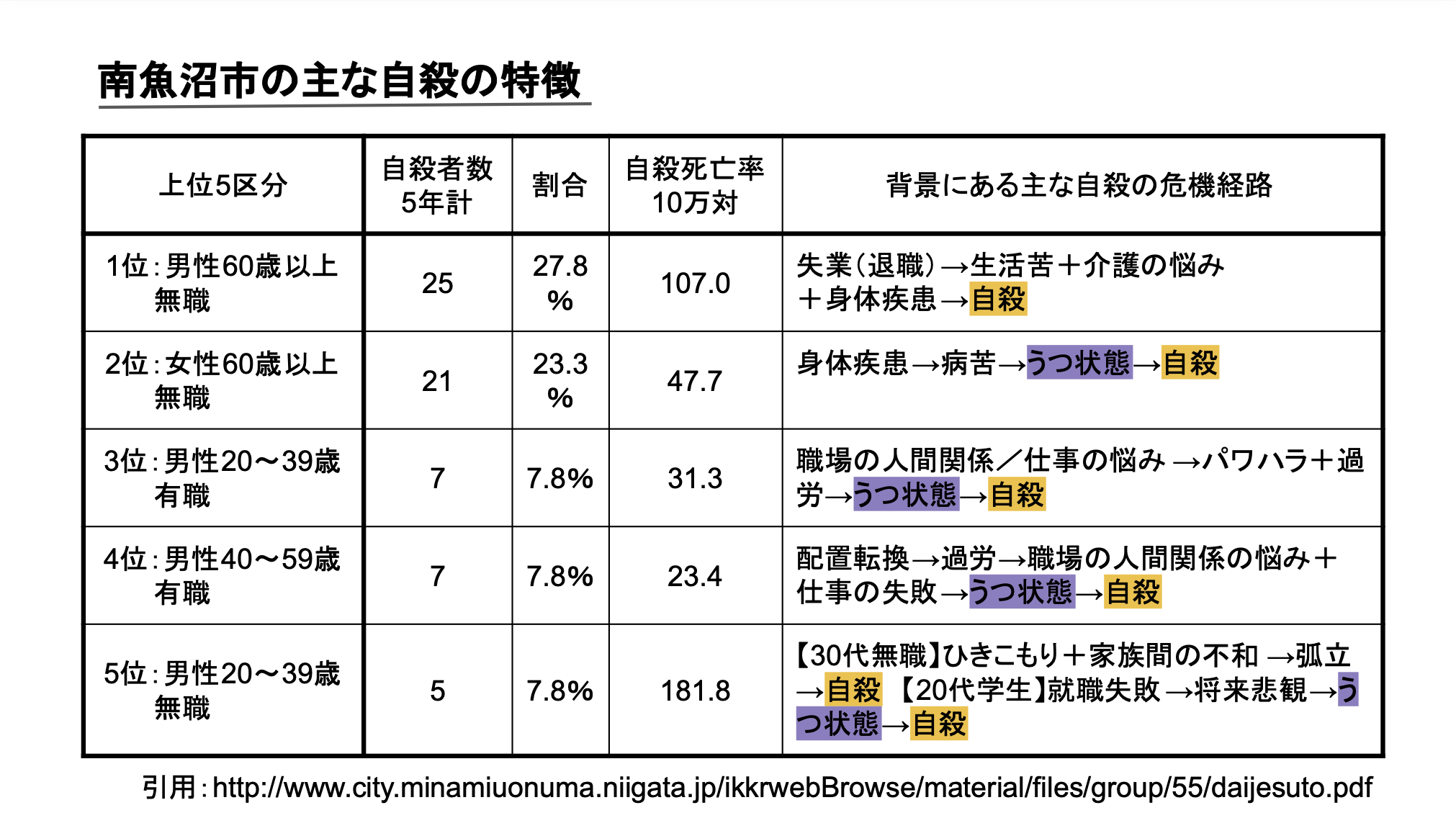 南魚沼市の自殺者がこんなに多いことを今回調べてみて初めて知りましたし、その原因のひとつが「雪国うつ」ということも衝撃でした。コロナウィルスの影響もあり、さらに心を病む人が増えてしまうのではないかと心配しています。
