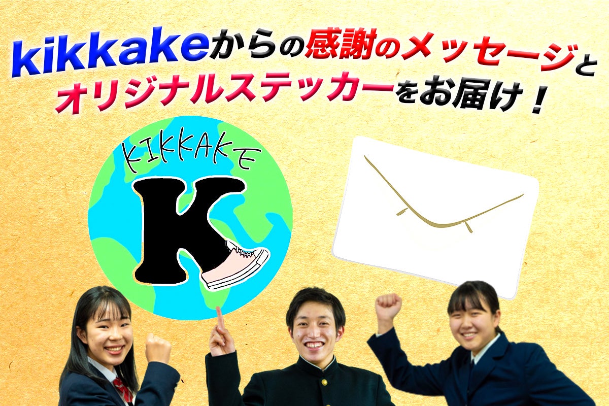 kikkakeから心を込めた感謝のメッセージと、メンバーがデザインしたオリジナルステッカー3枚をお届けします。