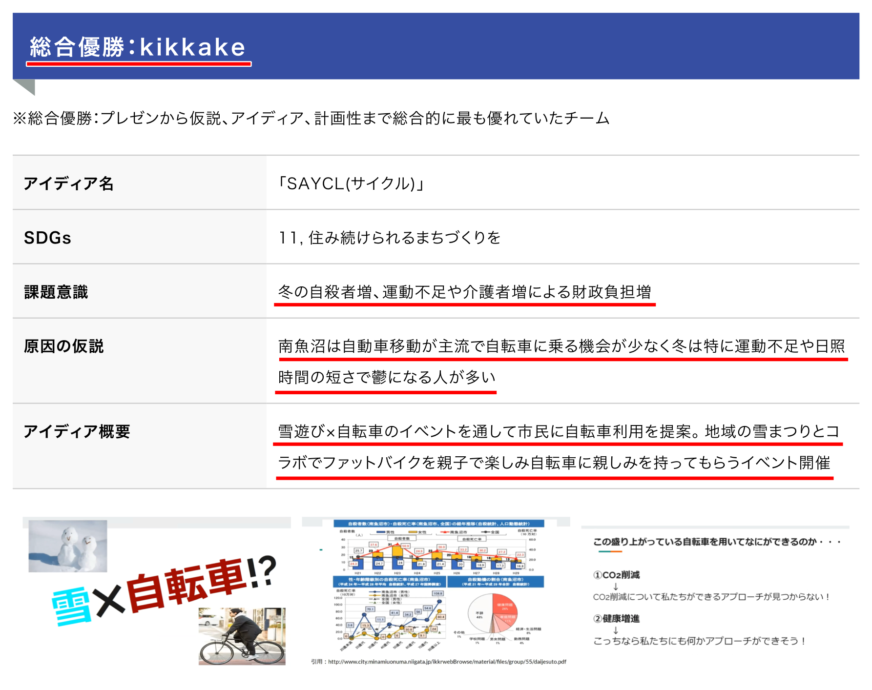 今度は私たちが地域のために何かアクションを起こしたいとメンバーと話し合い、この雪上自転車イベントを企画しました。まだまだ力もないし経験もないのですが、いまできることを精一杯やっていきたいと思います。