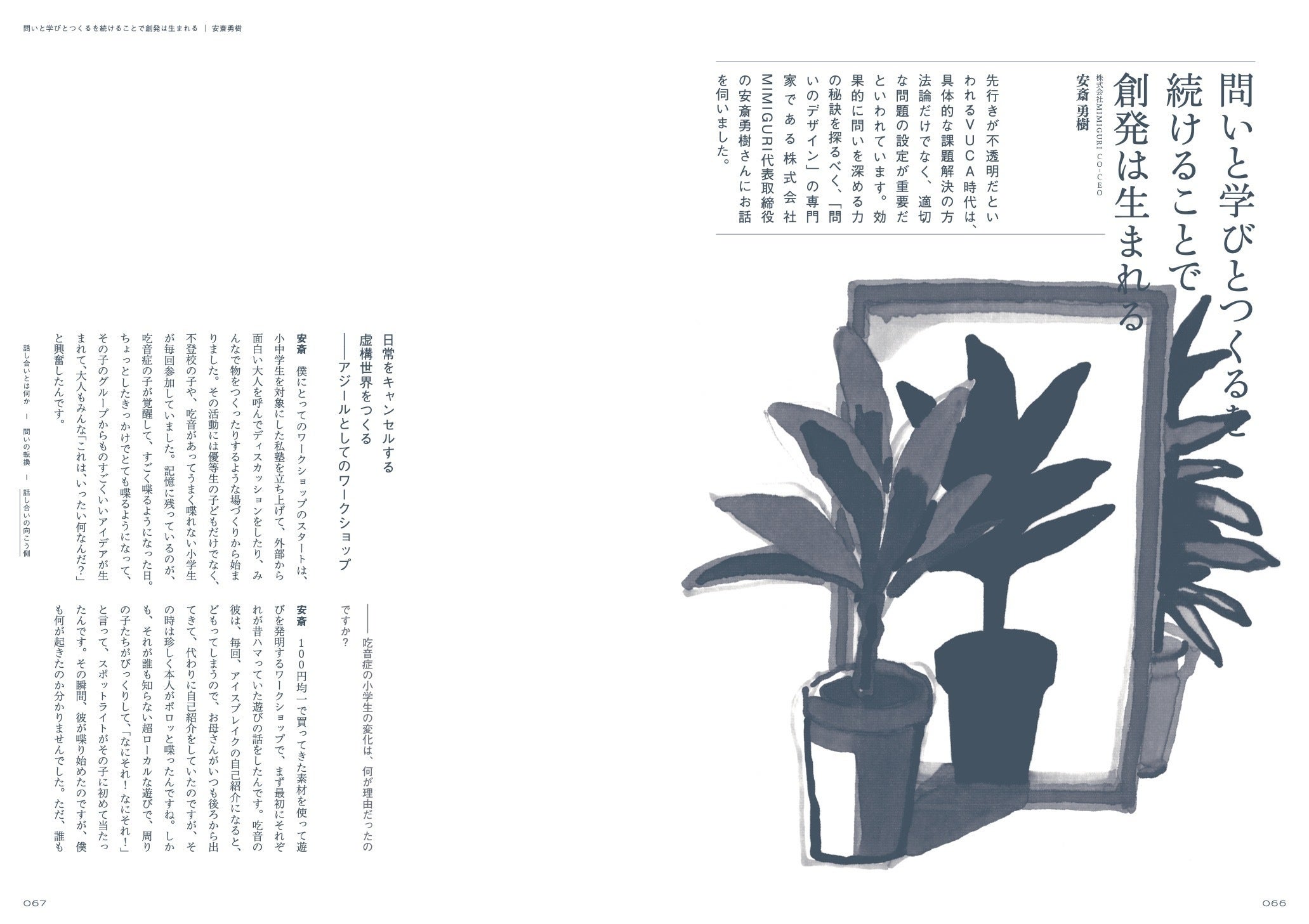 創刊号となる本誌の特集テーマは「よい話し合いとはなにか」。言語学、コミュニティデザイン、地域行政、組織開発、建築、商社、イノベーションなどの領域で活躍する13人の方々との話し合いのプロセスを収録しています。