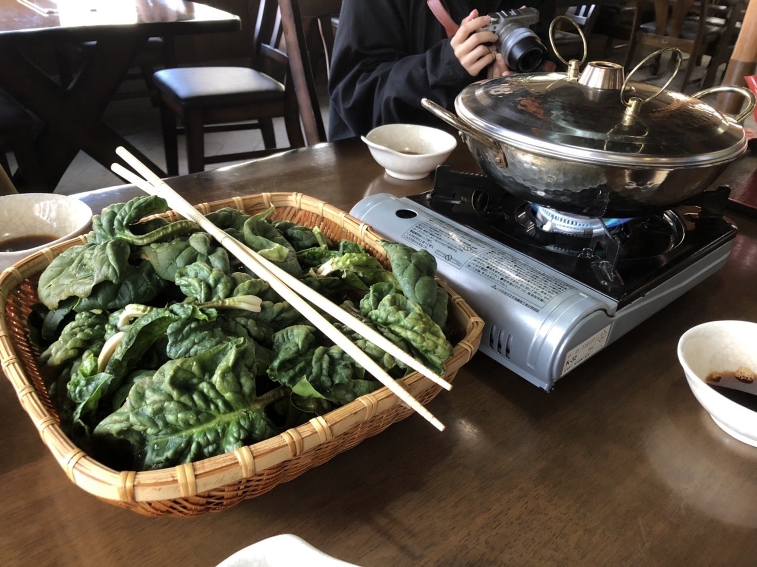 この日は昼食を郷土料理店「沢妻亭」でいただいたのですが、お店のご好意でちぢみほうれん草のしゃぶしゃぶをいただきました!