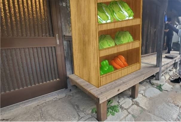この学生手作りの「えんさ」を、下の写真のような住民の方が作った野菜を販売する直売所などなど、たくさん活用して素敵な交流空間を作っていきたいです!