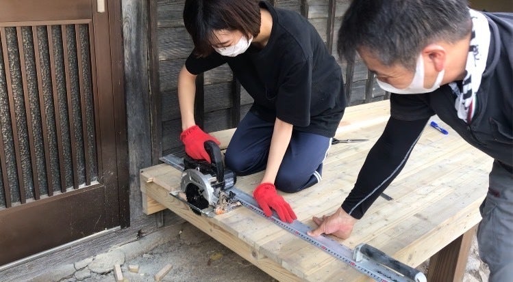 縁側製作でビスを打つのが上手くなったり、電動のこぎりを使いこなるようになった学生も