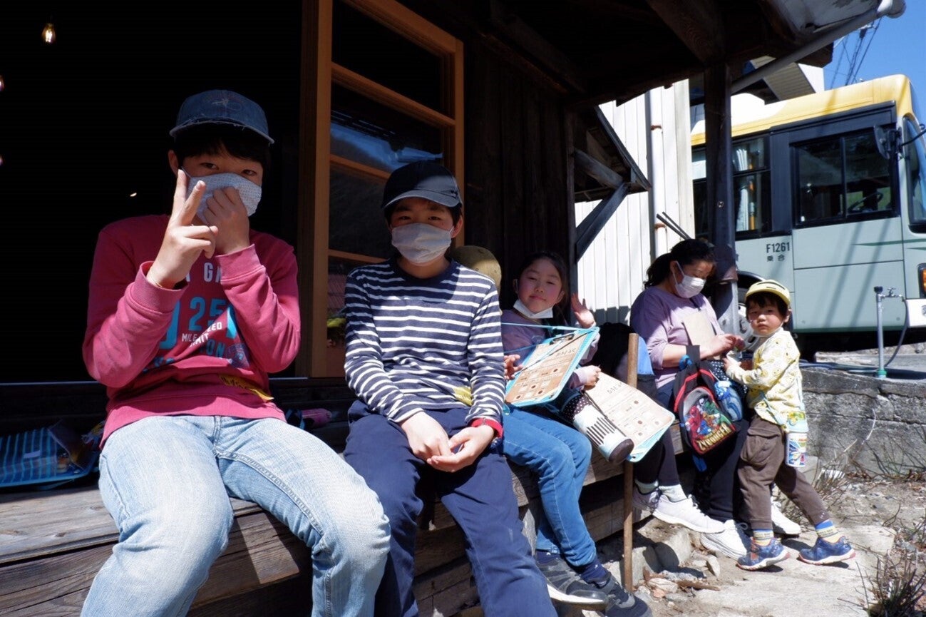午前中のミッションをクリアした子供たちは鶯宿の「えんさ」でしばしの休憩をしました。その様子が下の写真です!