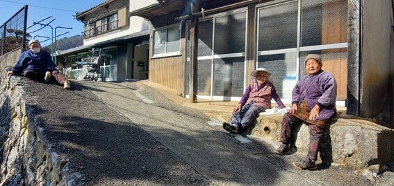 道でくつろぎながら子供たちを見守る地域住民の方々