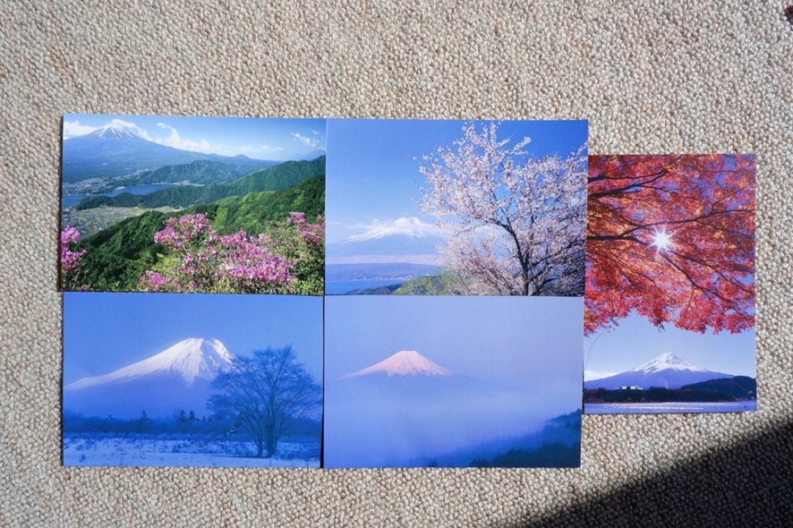 こちらは、芦川の絶景スポット『新道峠」からの富士山を写したポストカードの5枚セットになります。