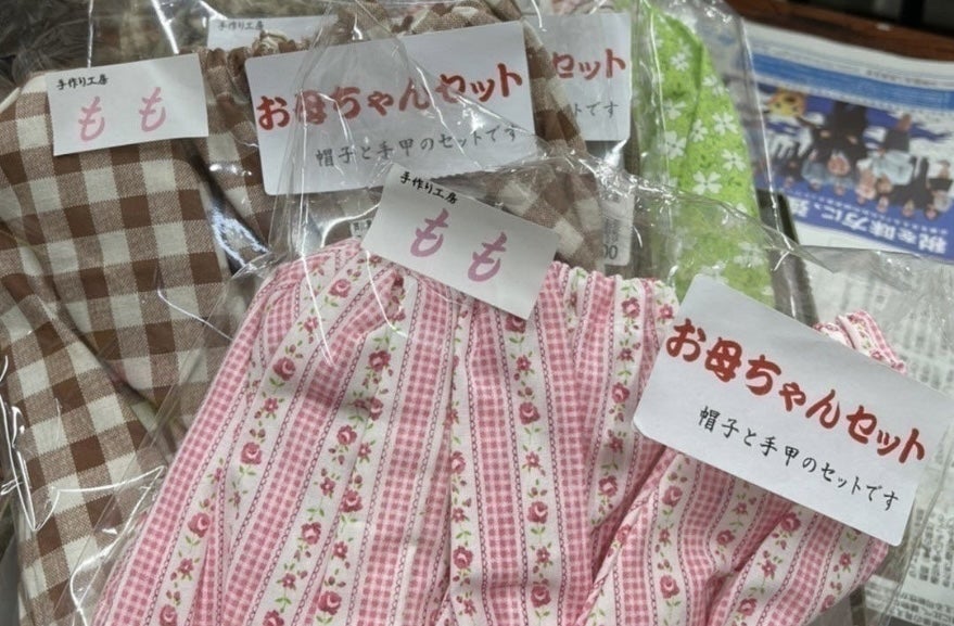 こんばんは!学生メンバー1年の田邉です。ただいま達成率72%!と思っていたらこれを書いている間に支援者が増えて74%になっていました!嬉しいです!!!たくさんの方にご支援頂き、心の底から感謝しております。さて、今日は返礼品の1つ、お母ちゃんセットについて紹介していきます。支援してくれる方にも芦川での生活を少しでも感じてもらいたい!お母ちゃんセットはそんな気持ちで選んだ自慢の返礼品です。お母ちゃんセットには、お料理をする際に便利な2つのアイテム「帽子」と手の甲から腕までを被うことの出来る「手甲」が含まれています。芦川で暮らしているおばあちゃん達や、農産物直売所であるおごっそう家で働いている皆さんは、揃いも揃ってこの帽子と手甲を身につけています!とっても可愛いですよね〜♩この帽子や手甲は、農産物直売所のおごっそう家でも販売されているのですが、これらは全て芦川の裁縫職人であるももえさんが日本手ぬぐいを使用して手作りをしているんです!支援してくださった方への帽子と手甲は、学生メンバーがももえさんから作り方を教えていただき、お送り致します。心を込めて丁寧に仕上げていきたいと思います!色々な柄の手ぬぐいを使用して作成していこうと考えているので、どんな柄のものが届くのかもお楽しみにお待ちくださいませ(^^)v挑戦中のクラウドファンディングも残り8日ということで、いよいよ終盤に差し掛かって参りました!目標達成に向けてまだまだ頑張っていきます!!みなさま、ぜひ拡散・ご支援のお力添をお願い致します<(_ _)>学生メンバー 田邉