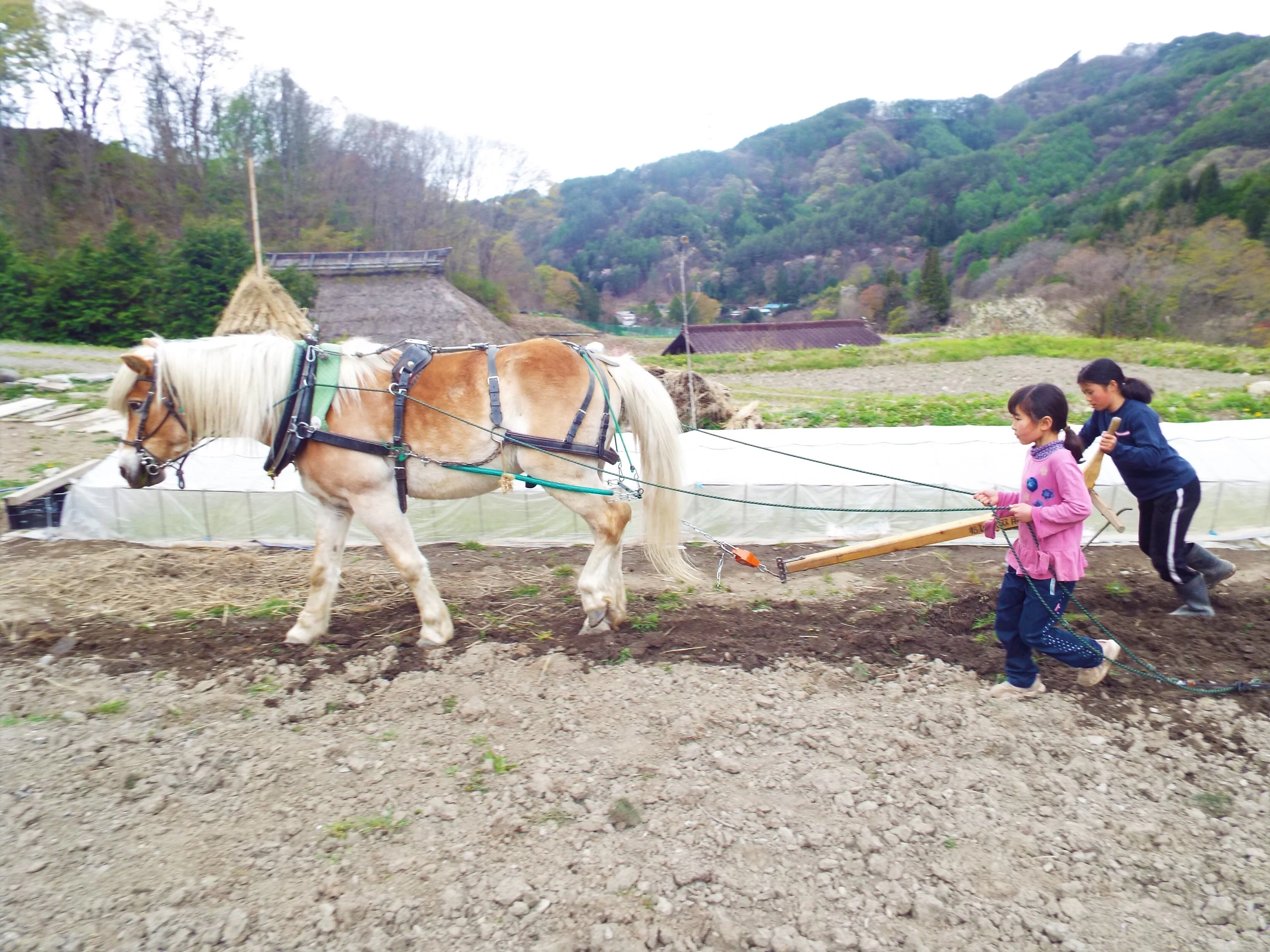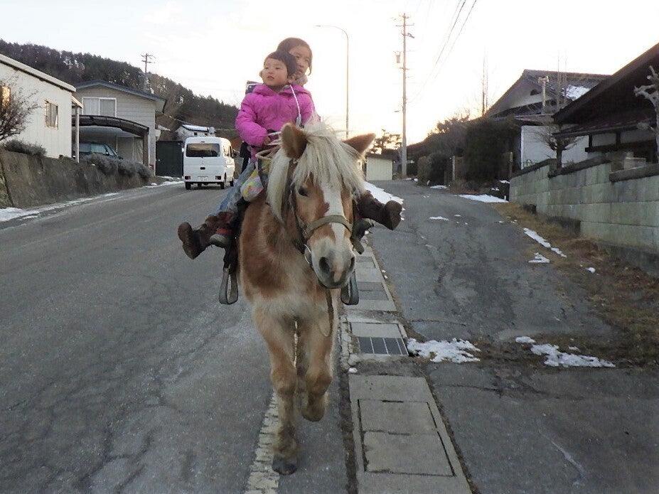 馬で田んぼを耕し、馬で薪や肥料を運び、時には乗せてもらって村や山の中を散歩する。この村に暮らす子ども達にとって、我が家のビンゴはすっかり馴染みのある存在となっています。