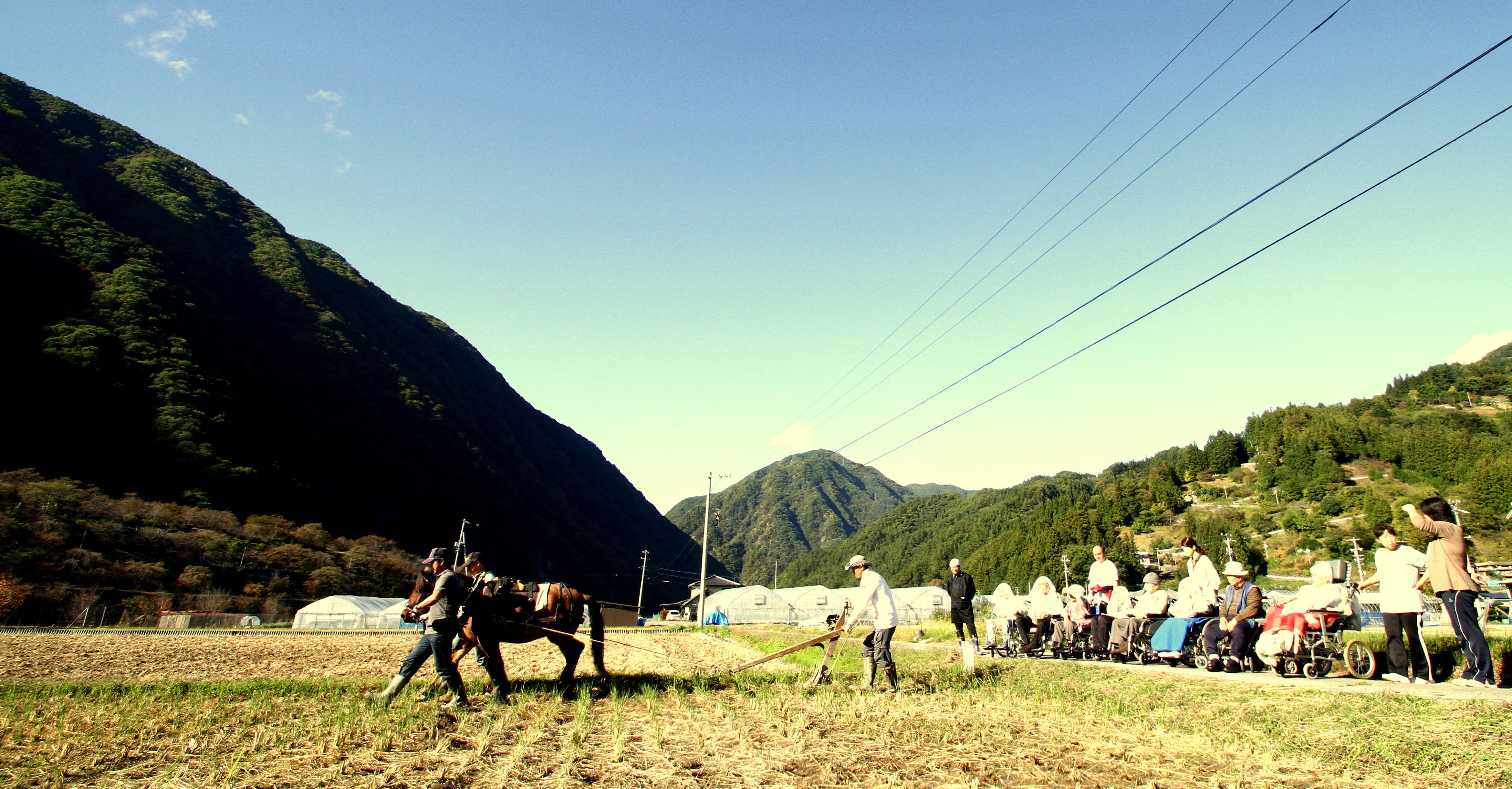 <お年寄りの方が見守る中 大鹿小馬耕体験会>