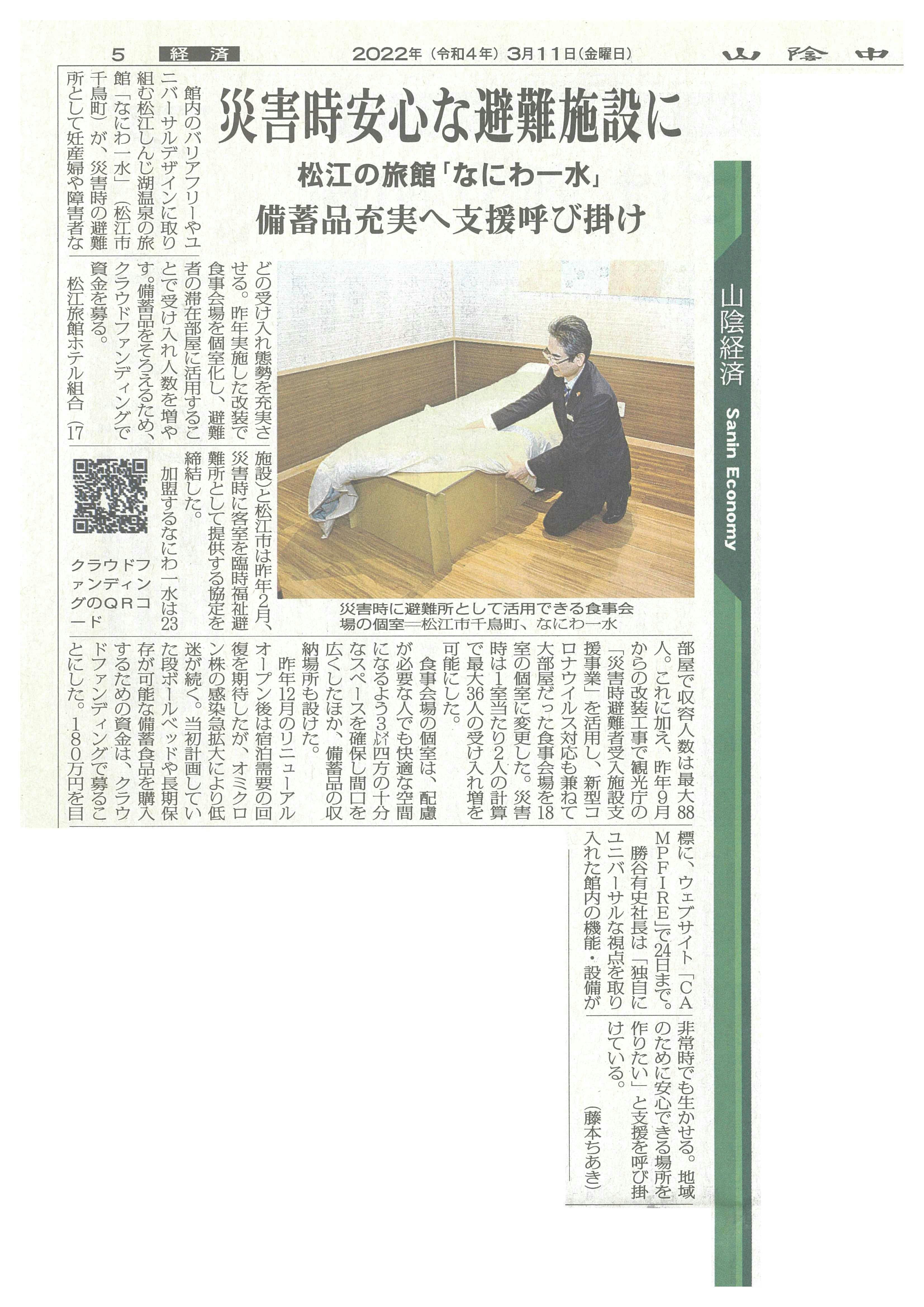 地元新聞『山陰中央新報』の記事です。