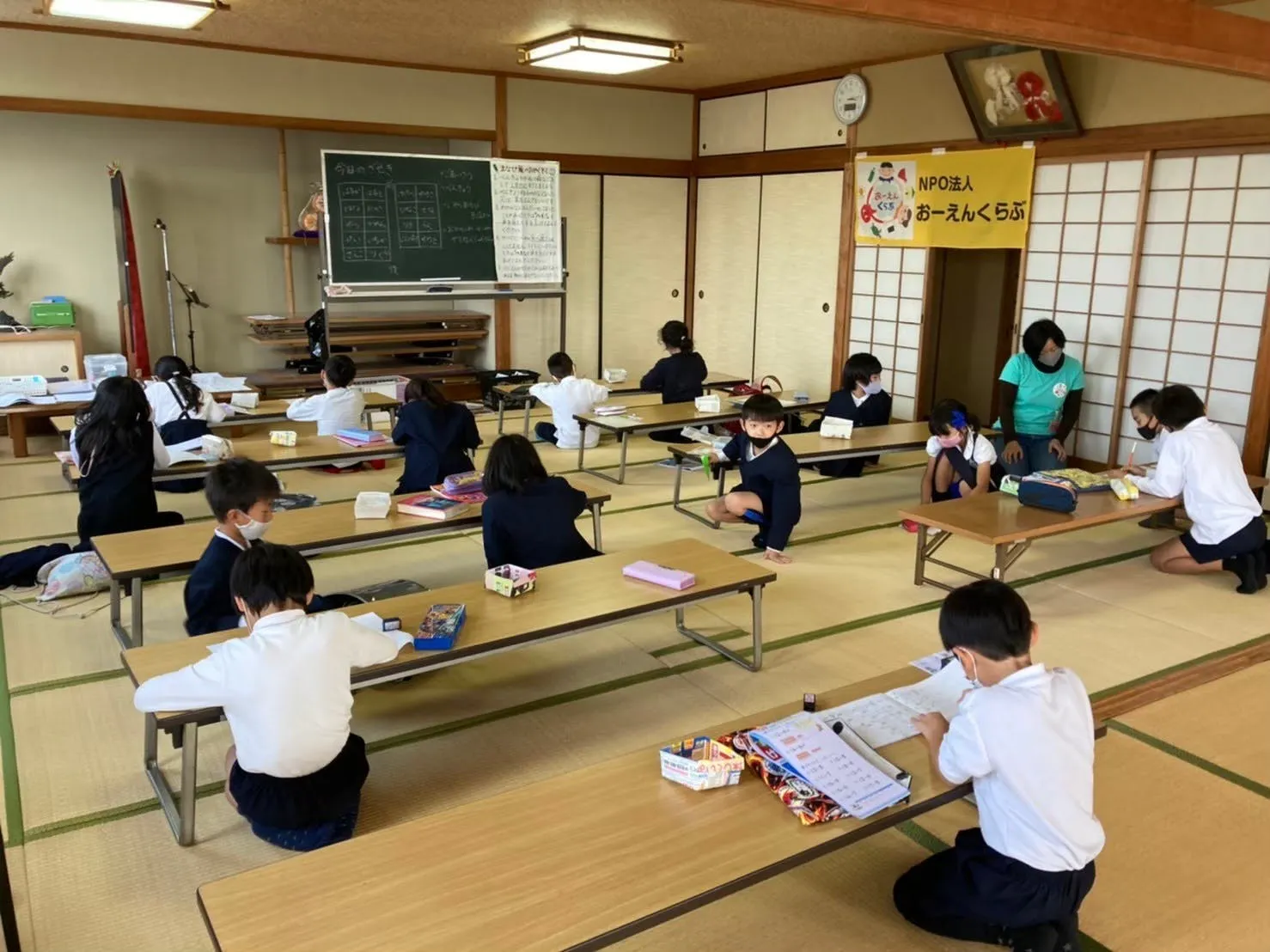 学年を越えてみんなで過ごす時間は、まるで寺子屋のよう。一人でやると時間のかかる宿題も、みんなでやったらすぐに終わっちゃう!