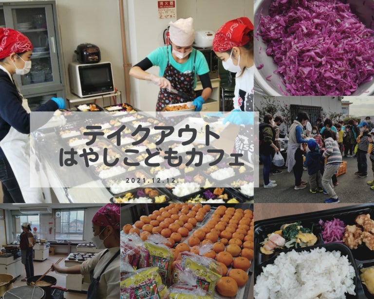 NPO法人おーえんくらぶは、こども食堂も開催しています。2年前からはテイクアウト弁当に切り替えて、毎回80食近いお弁当を作ってるんですよ♪80食ってね、お米45合、15kgくらいの量。それを詰めるだけでも大変、さらにバランスの取れたおかず3種類も。