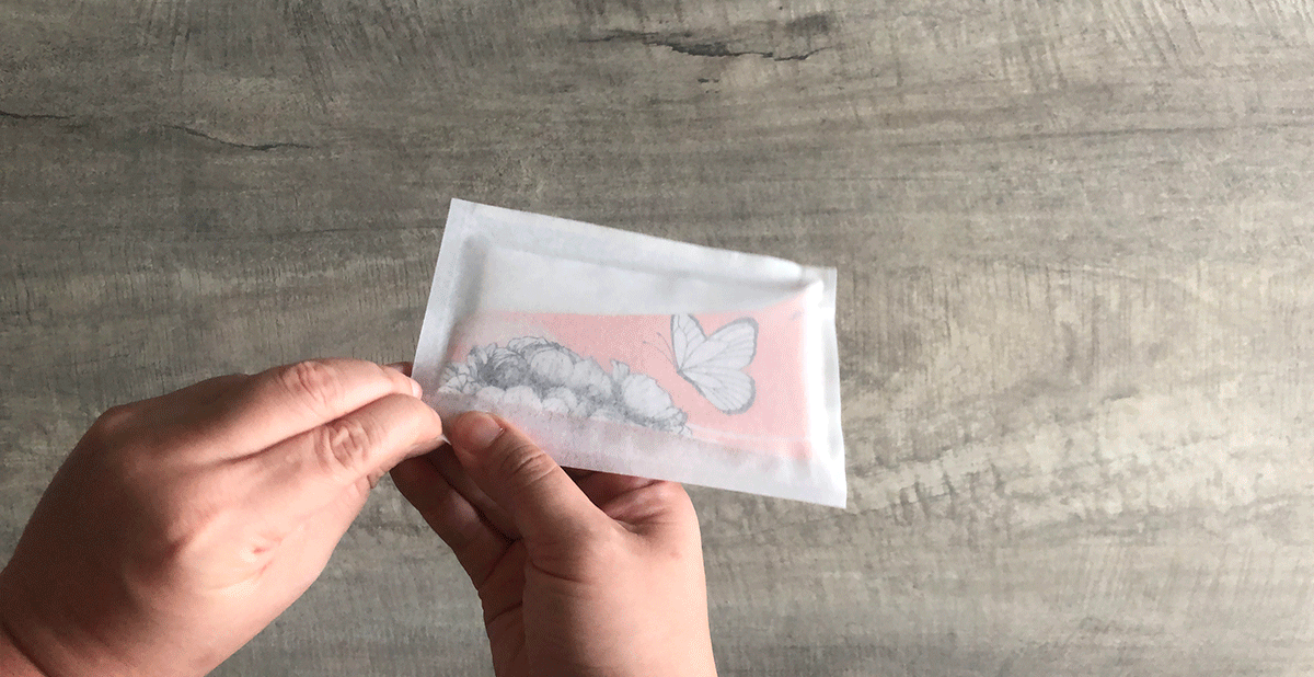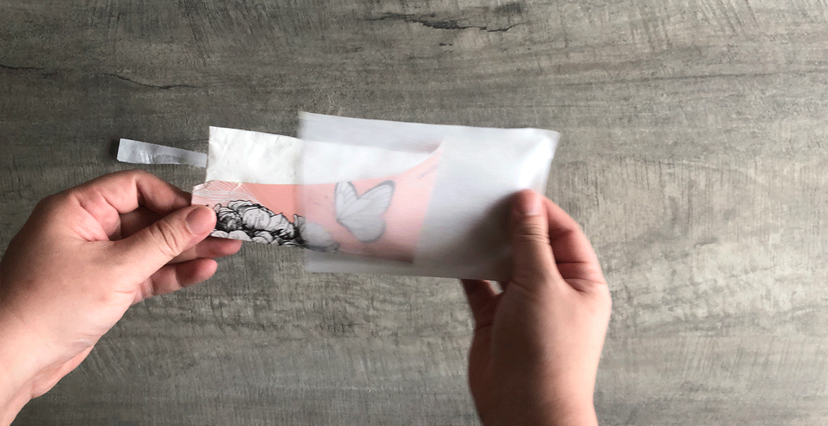 「長方形なのでポーチにも入れやすく、袋から透けて見える柄が可