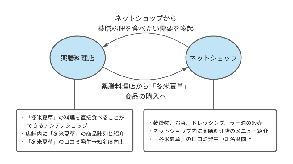 ①ネットショップでの販売、②アンテナショップとしての薬膳料理店の開店、③道の駅などでの卸販売