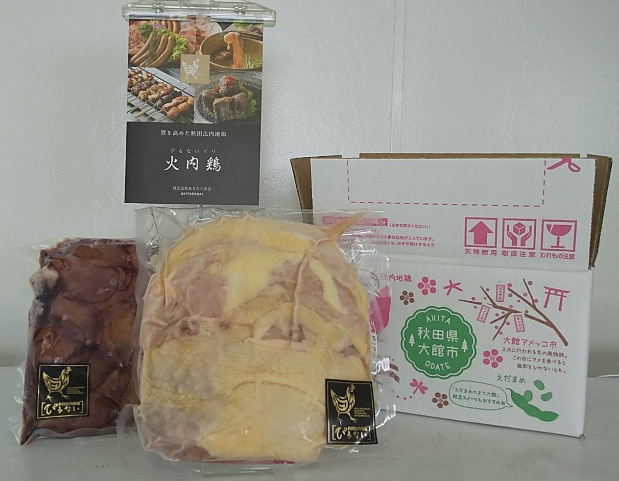 内容量:比内地鶏正肉(もも・ムネ) 1羽分(約1kg×1パック )、比内地鶏レバー・ハツ(約500g×1パック)