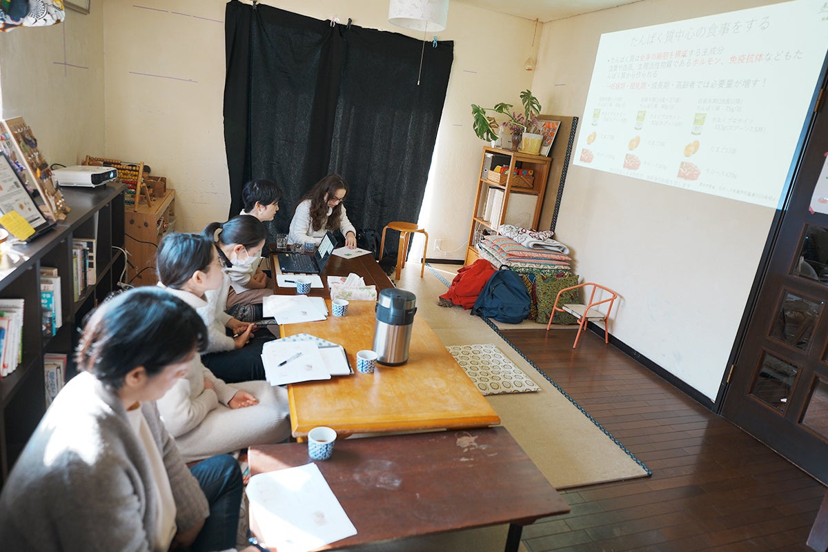 栄養講座では、高たんぱく高脂質の食事を摂ることで、妊娠中のトラブルや出産の異常の予防、産後うつの予防にも繋がり、赤ちゃんの夜泣きも減ると言われています。産後も継続していくことで、母子ともに健康な身体が育まれます。安産がっこうの卒業生も、自分も余裕があって赤ちゃんも落ち着いているので、産後の生活が楽だったという声が多数あります。
