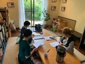 今日も安産がっこうをしています。今日は出産から産後のことを学習中です。