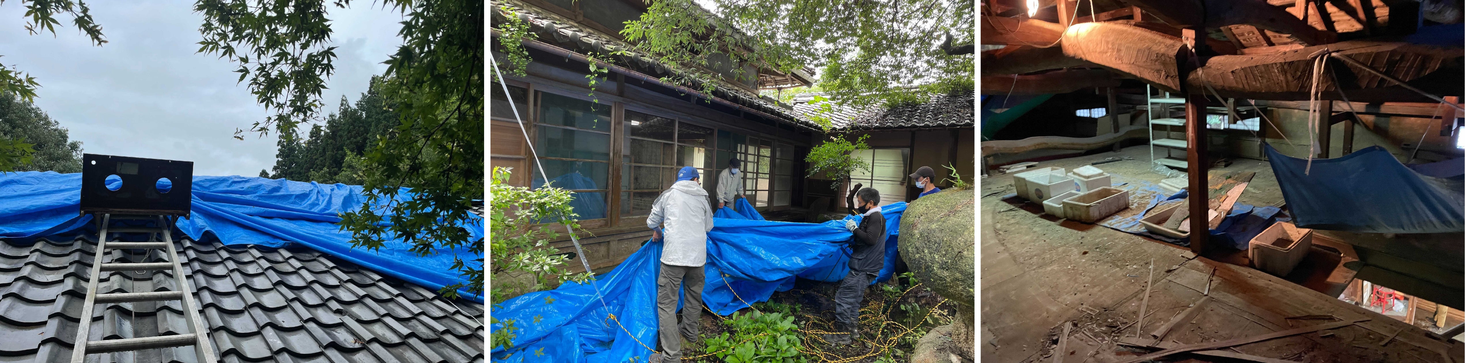 雨漏りも激しいため、雨が降ると床に水がたまり、床板が腐ってしまいました。まずはこの屋根部分の修復が急務です。