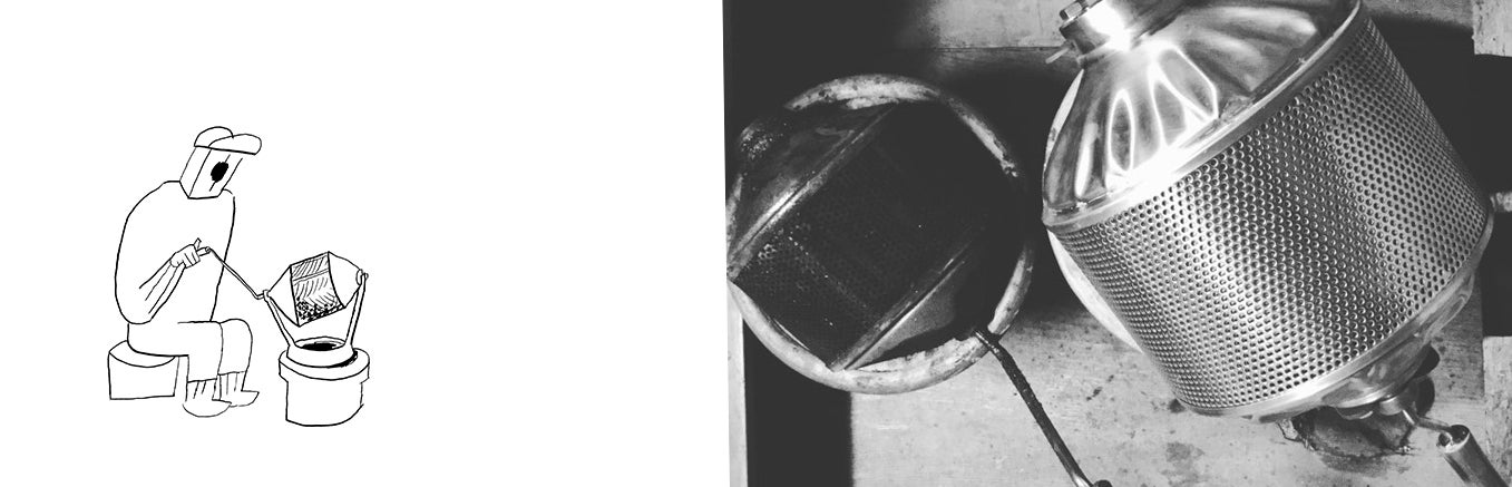 東京でのファッション業界を経た後、違和感を覚え地元に戻ったときに 辿り着いた炭焼き。「炭を焼いているのは人間の行為かもしれないけど人間がやれることってそんなにない。あとは自然が炭をつくりあげていく。事に仕えるということ。単純に炭と生活していたいんです。」 九州で炭焼き業をする中で、珈琲豆を焙煎し始めた。