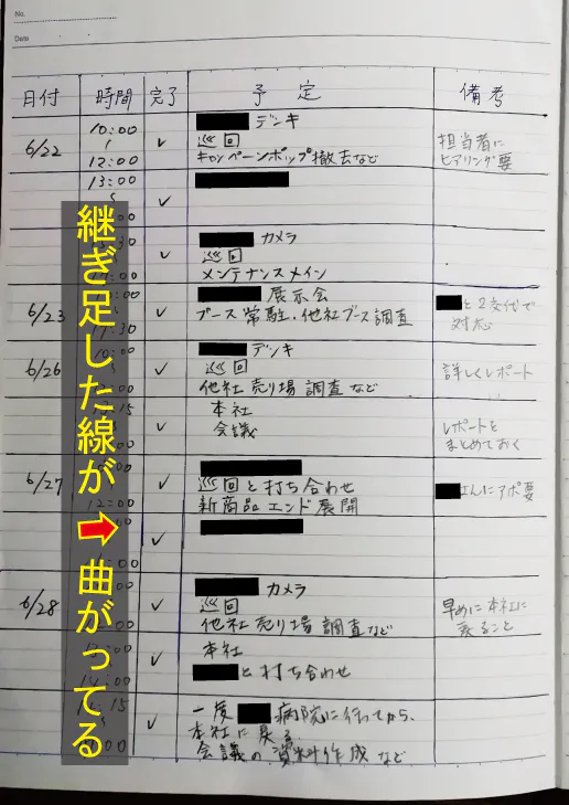 「長い定規を持ち歩いてないから、線が斜めになっちゃうんだよねー」