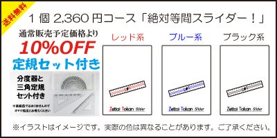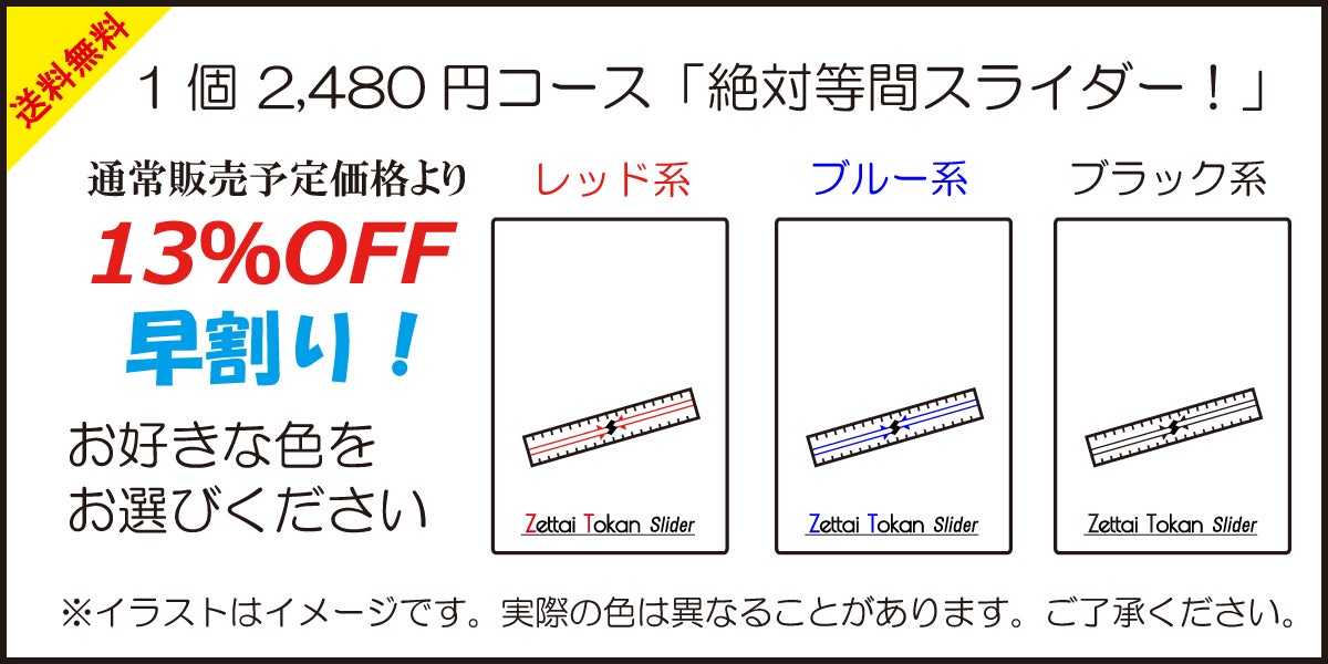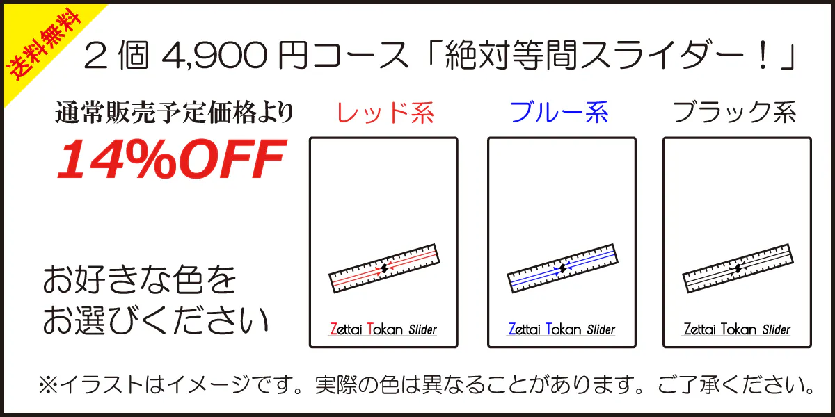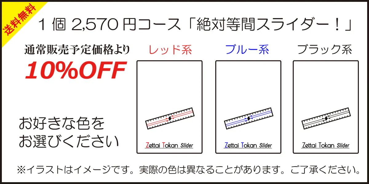「絶対等間スライダー!」は、A4サイズの下敷きと15cm定規のセットです。