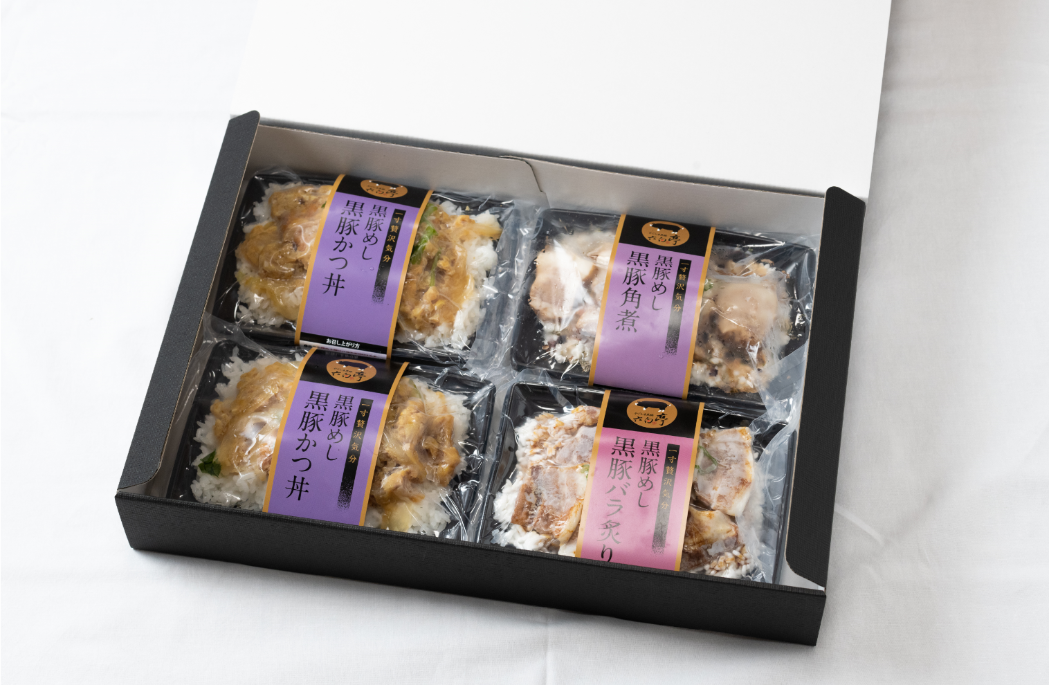 今回は「黒豚バラ炙り」「黒豚かつ丼」「黒豚バラ炙り」の3種類4つをリターンとさせていただきます。