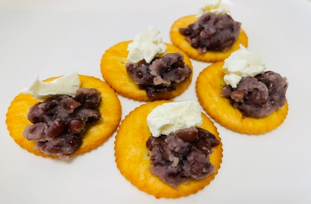 クリームチーズの滑らかな口どけと程よい酸味は、超低糖度粒練りあんの上品な甘さと良く合います。あんこにはお茶というイメージがありますが、実はお茶同様にポリフェノールを多く含むワインはあんことの相性も抜群なのです。ワインのおつまみにぜひ、クリームチーズと超低糖度粒練りあんを一緒にお召し上がりください。