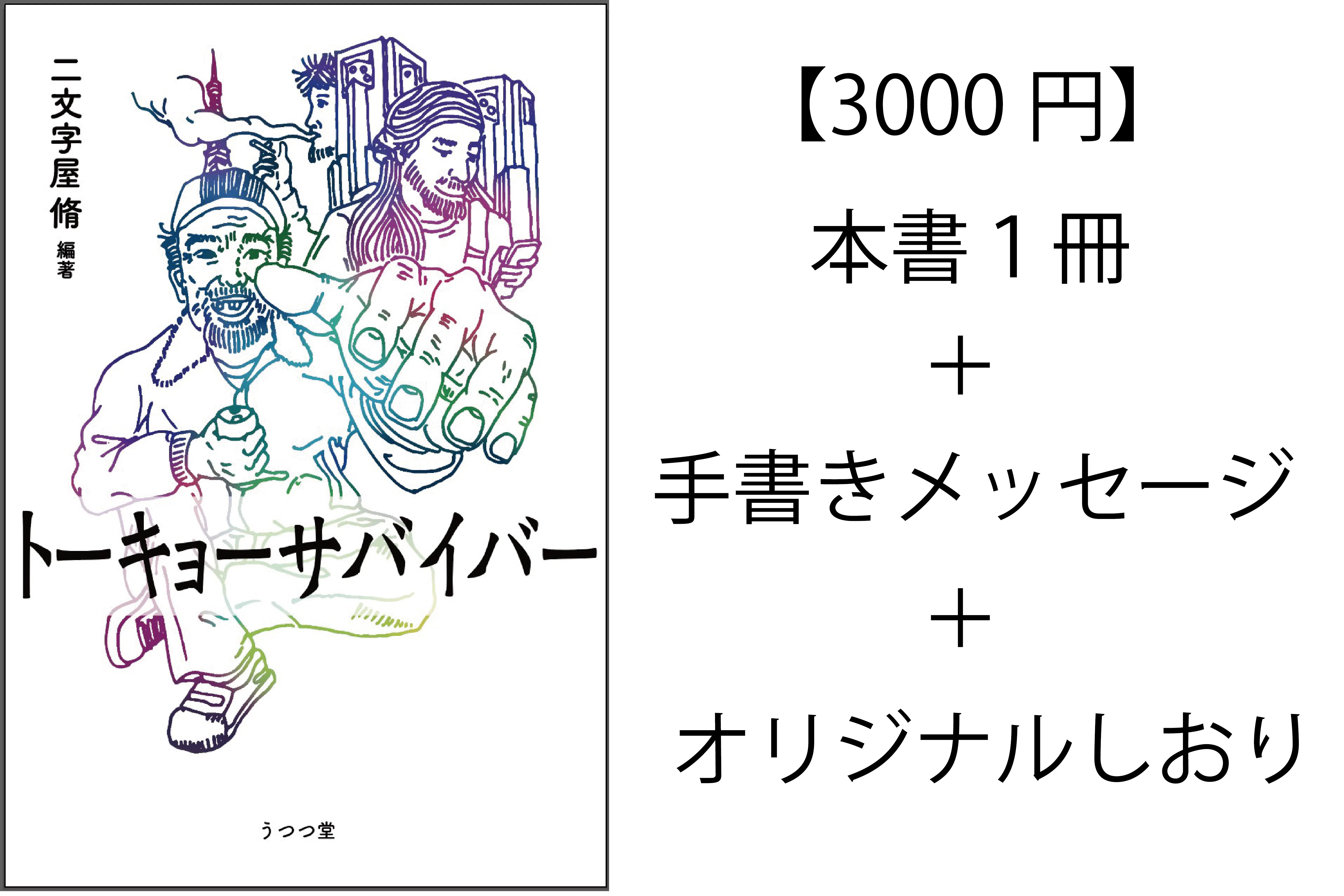 本書『トーキョーサバイバー』3冊。執筆者でもあるプロジェクト参加学生からの手書きメッセージ1枚とオリジナルしおり3枚を同封いたします。